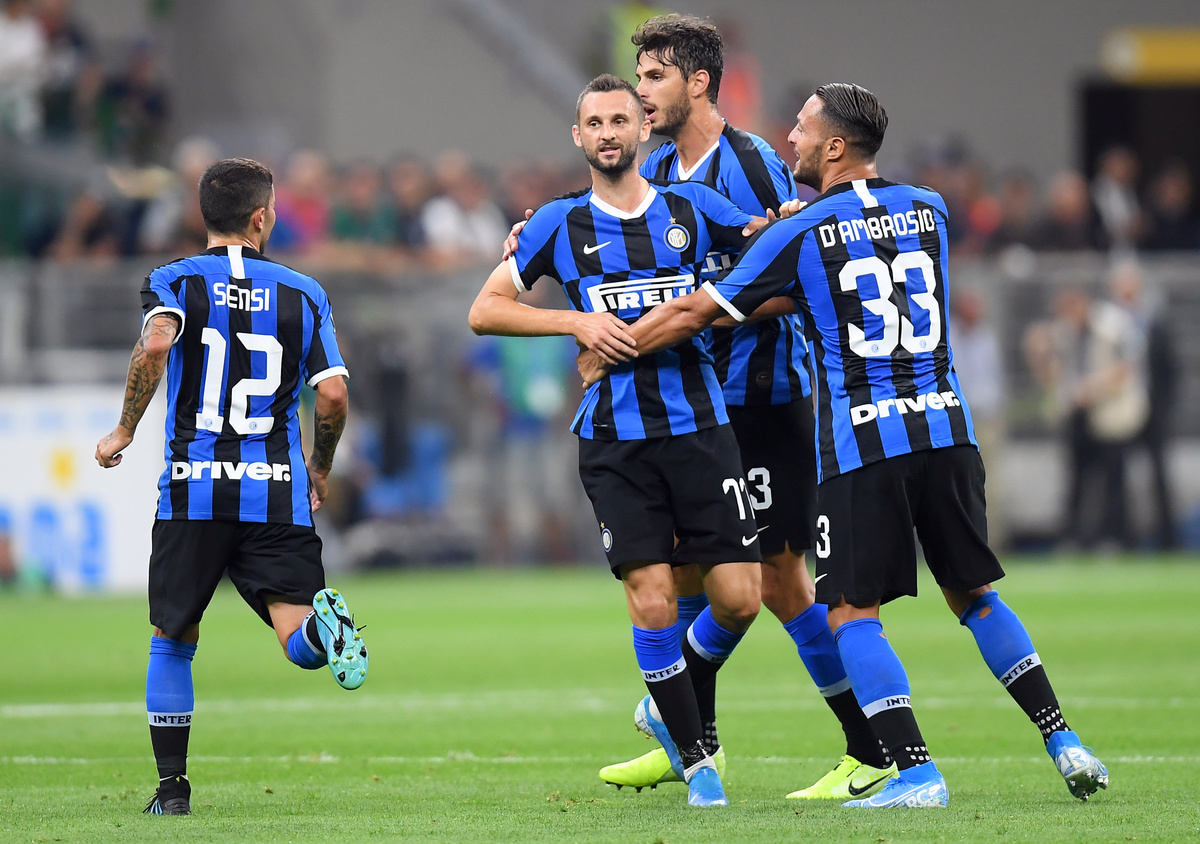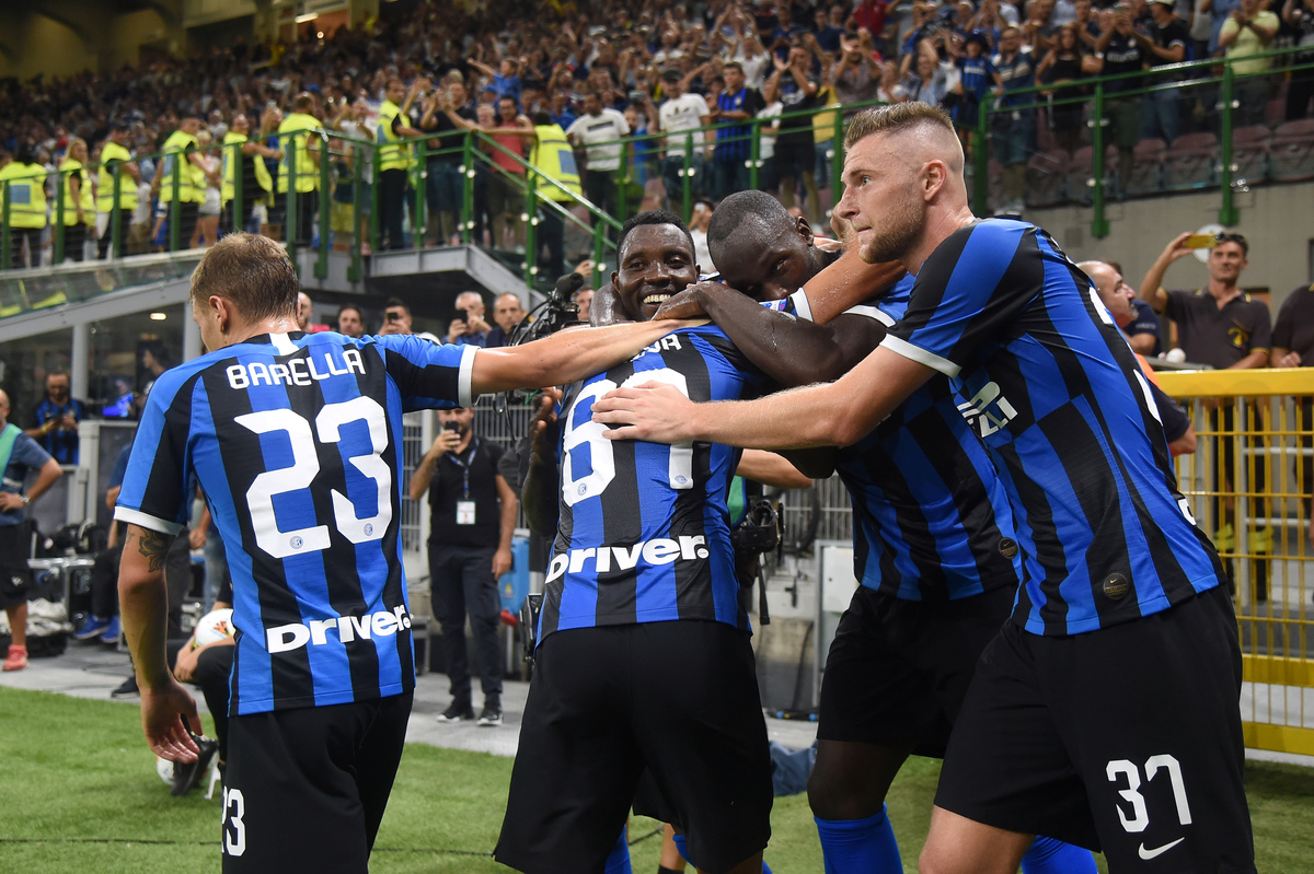Soccer Football - Serie A - Inter Milan v Lecce - San Siro, Milan, Italy - August 26, 2019 Inter Milan's Marcelo Brozovic celebrates scoring their first goal with team mates REUTERS/Daniele MascoloSoccer Football - Serie A - Inter Milan v Lecce - San Siro, Milan, Italy - August 26, 2019 Inter Milan's Stefano Sensi scores their second goal REUTERS/Daniele MascoloSoccer Football - Serie A - Inter Milan v Lecce - San Siro, Milan, Italy - August 26, 2019 Lecce's Filippo Falco in action with Inter Milan's Milan Skriniar REUTERS/Daniele MascoloSoccer Football - Serie A - Inter Milan v Lecce - San Siro, Milan, Italy - August 26, 2019 Inter Milan's Marcelo Brozovic in action with Lecce's Jacopo Petriccione REUTERS/Daniele MascoloSoccer Football - Serie A - Inter Milan v Lecce - San Siro, Milan, Italy - August 26, 2019 Inter Milan's Romelu Lukaku in action with Lecce's Zan Majer REUTERS/Daniele MascoloSoccer Football - Serie A - Inter Milan v Lecce - San Siro, Milan, Italy - August 26, 2019 Inter Milan's Antonio Candreva celebrates scoring their fourth goal with team mates REUTERS/Daniele MascoloSoccer Football - Serie A - Inter Milan v Lecce - San Siro, Milan, Italy - August 26, 2019 Inter Milan players celebrate after the match REUTERS/Daniele Mascolo
