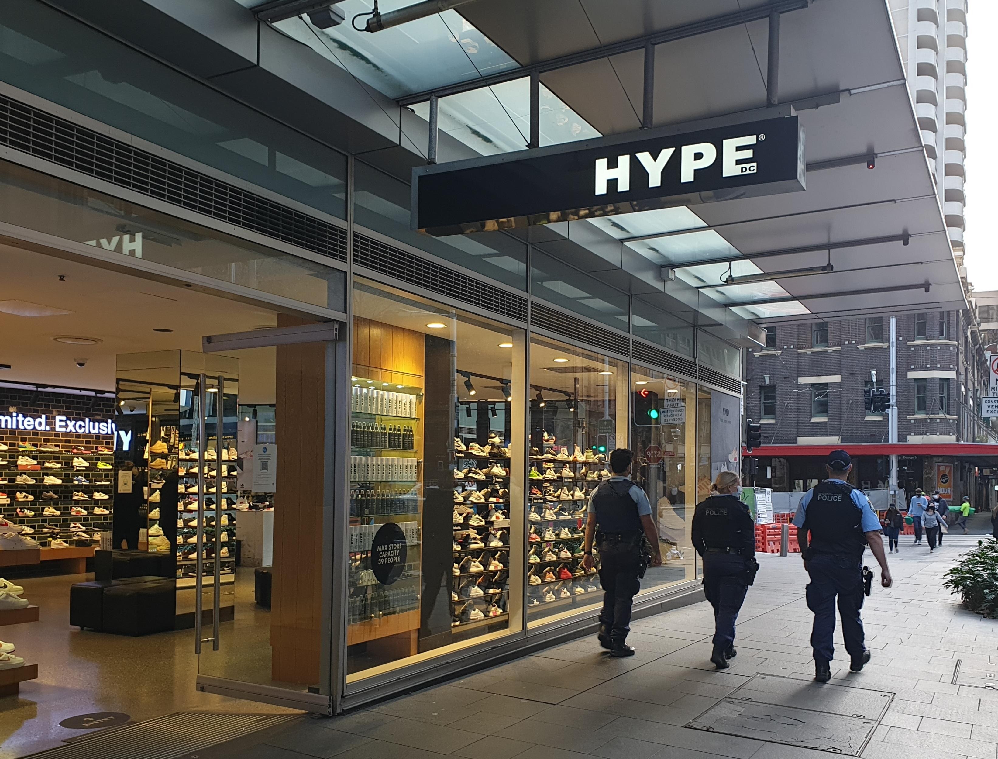 ABC News observed three police officers walking past a Hype DC store where customers were trying to find the right-sized shoe (arguably an act of "browsing").