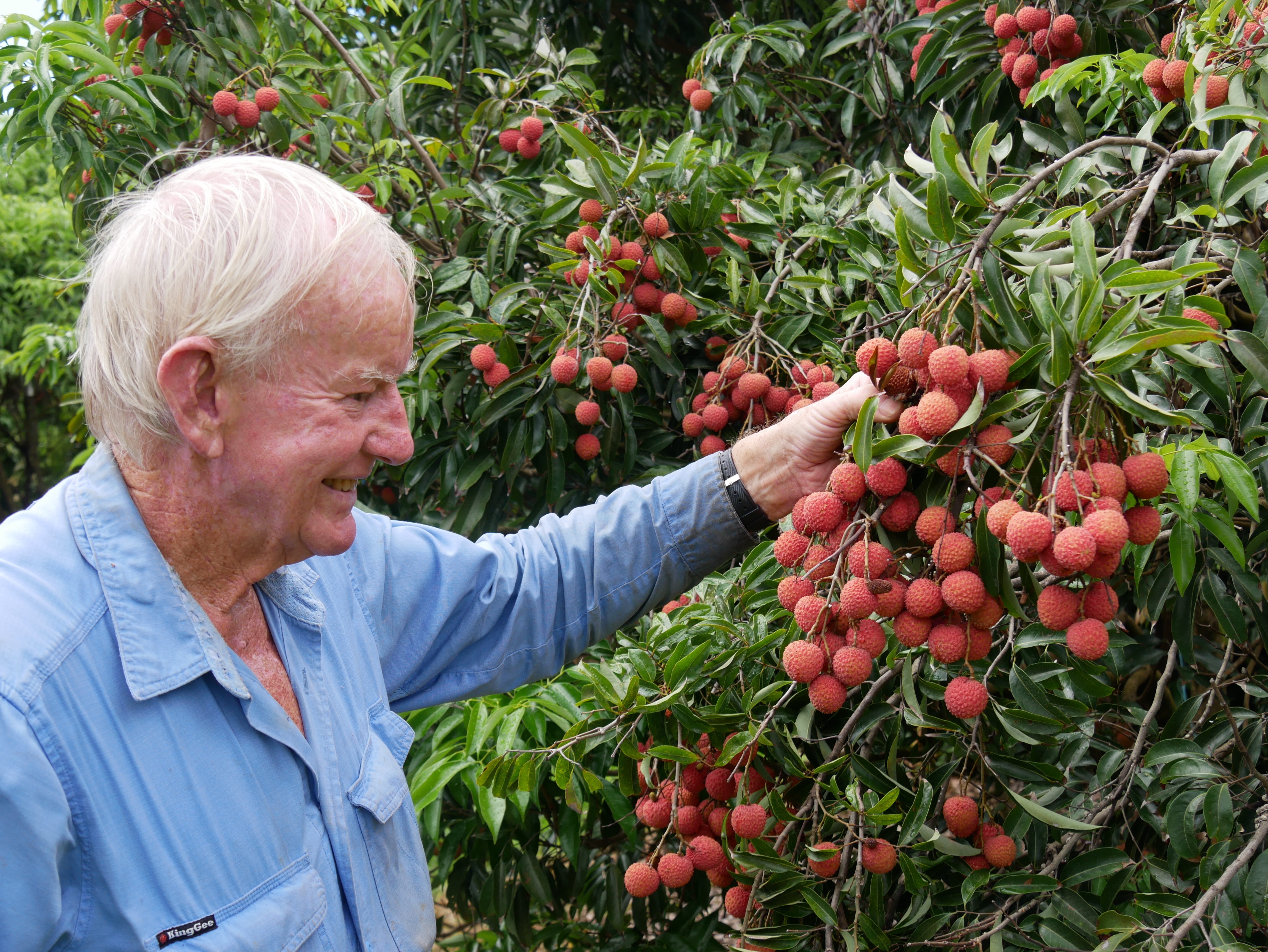 Mr Knoblock started farming lychees at South Boambee on the Coffs Coast more than 40 years ago after relocating from Melbourne.