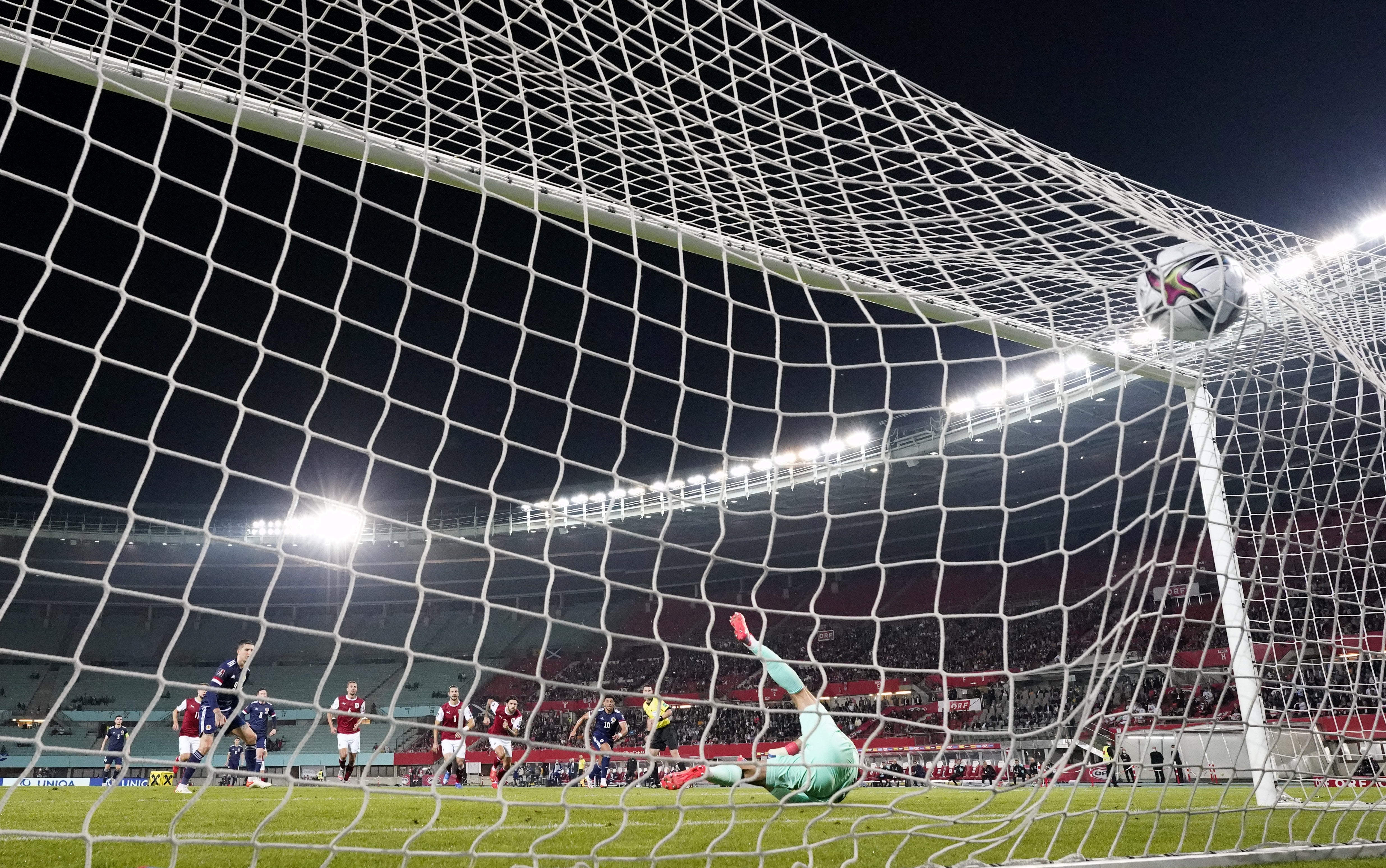 Baumgartner had the ball in the net in added time but was well offside, with Scotland holding on for a statement win and taking the quest for Qatar to Hampden.
