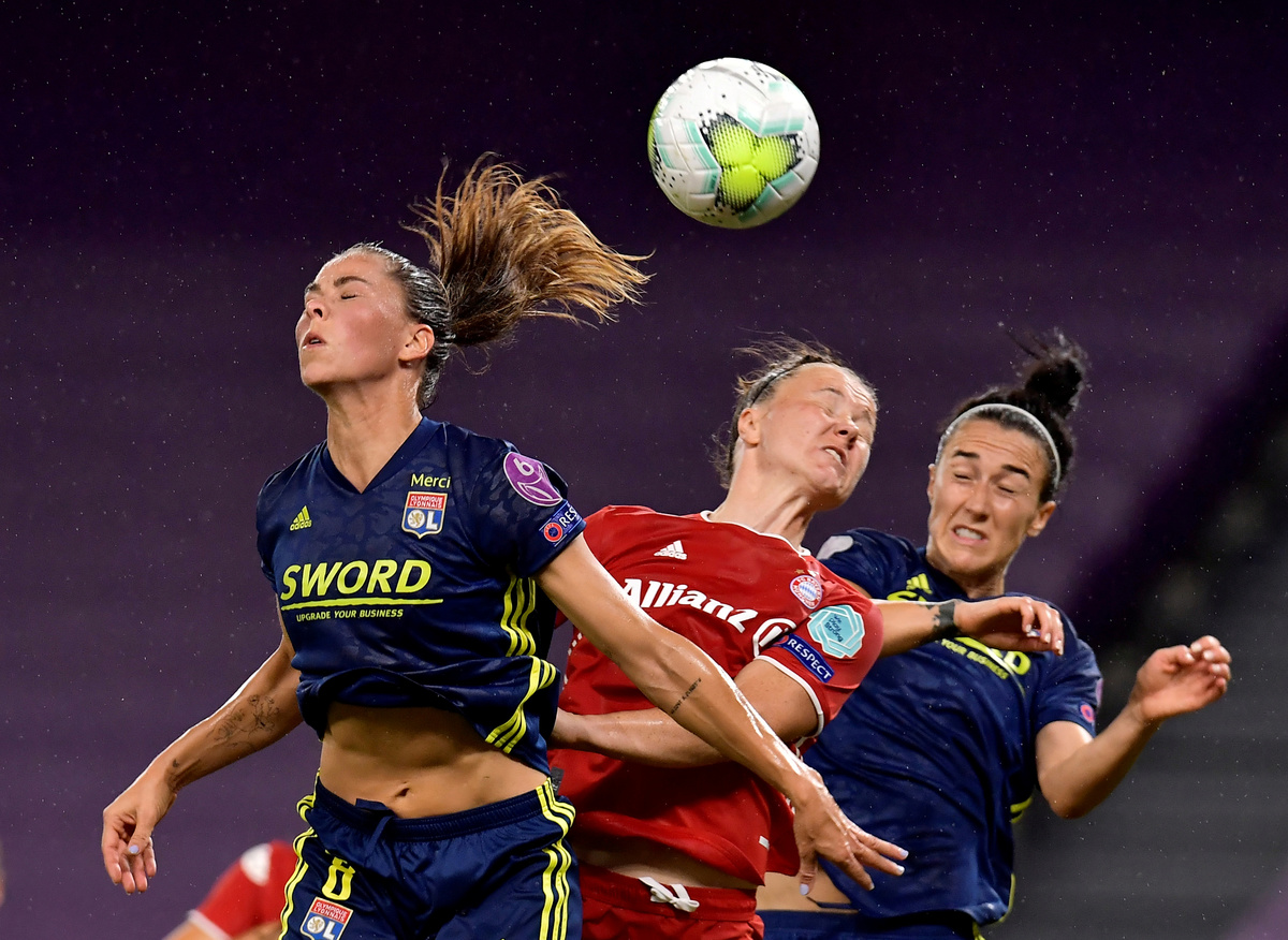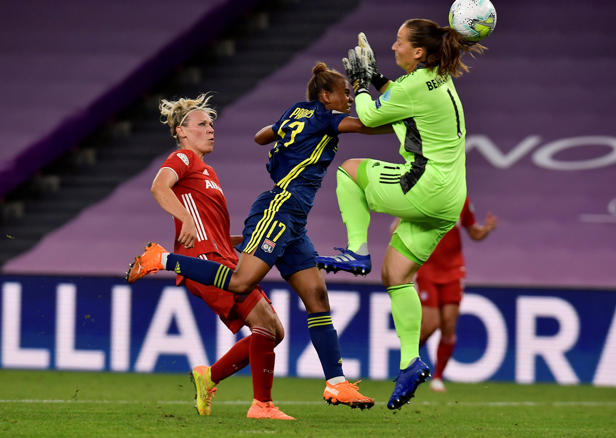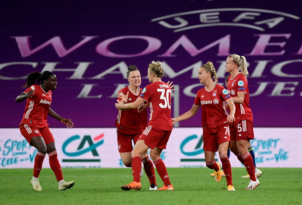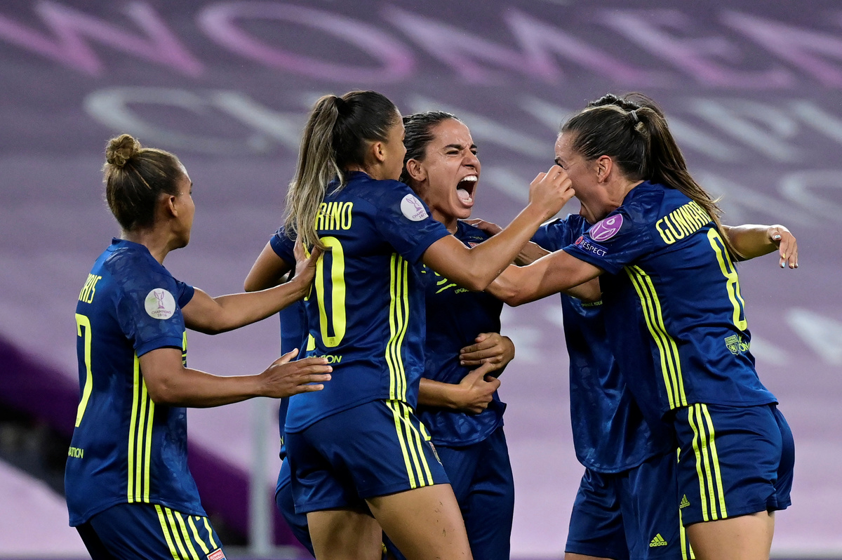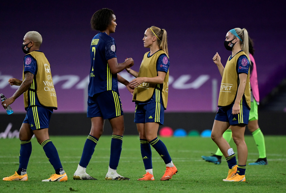 Soccer Football - Women's Champions League - Quarter Final - Olympique Lyonnais v Bayern Munich - San Mames, Bilbao, Spain - August 22, 2020 Olympique Lyonnais' Amel Majri celebrates scoring their second goal with teammates, as play resumes behind closed doors following the outbreak of the coronavirus disease (COVID-19) Javier Soriano/Pool via REUTERSSoccer Football - Women's Champions League - Quarter Final - Olympique Lyonnais v Bayern Munich - San Mames, Bilbao, Spain - August 22, 2020 Bayern Munich's Carolin Simon celebrates scoring their first goal with teammates, as play resumes behind closed doors following the outbreak of the coronavirus disease (COVID-19) Javier Soriano/Pool via REUTERSSoccer Football - Women's Champions League - Quarter Final - Olympique Lyonnais v Bayern Munich - San Mames, Bilbao, Spain - August 22, 2020 Olympique Lyonnais' Nikita Parris scores their first goal, as play resumes behind closed doors following the outbreak of the coronavirus disease (COVID-19) Alvaro Barrientos/Pool via REUTERS