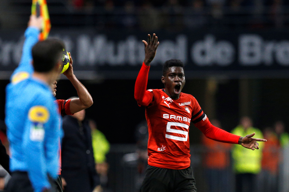 Soccer Football - Ligue 1 - Stade Rennes v Olympique Lyonnais - Roazhon Park, Rennes, France - March 29, 2019 Stade Rennes' Ismaila Sarr reacts REUTERS/Stephane Mahe