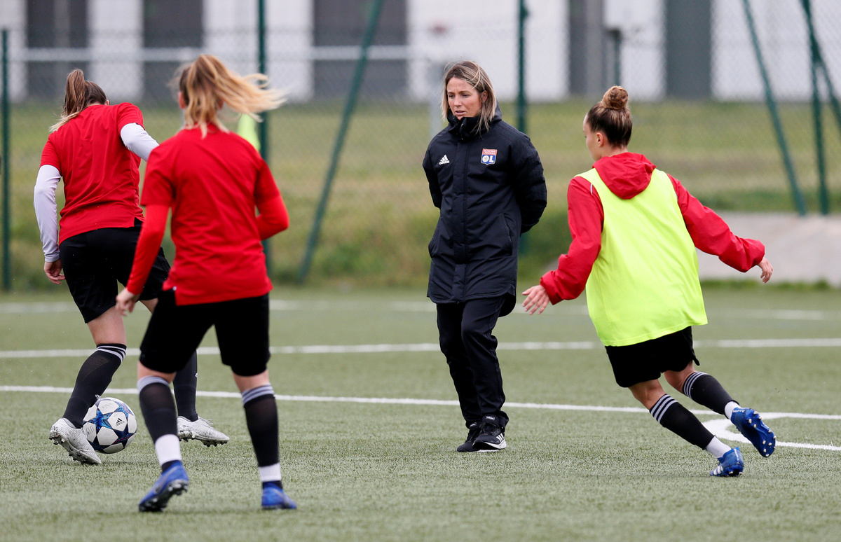 As the girls train under the watch of former Lyon and France international Camille Abily, the screams of the boys practising can be heard nearby.
