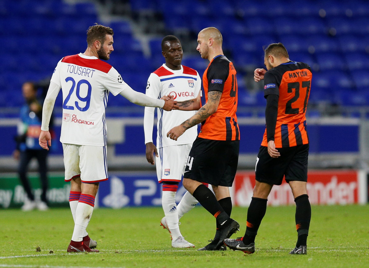 LYON, France (Reuters) - Olympique Lyonnais produced a stirring fightback to claw back two superb goals from Shakhtar Donetsk's Junior Moraes and rescue a 2-2 draw behind closed doors in a thrilling end-to-end contest at their Groupama Stadium on Tuesday.