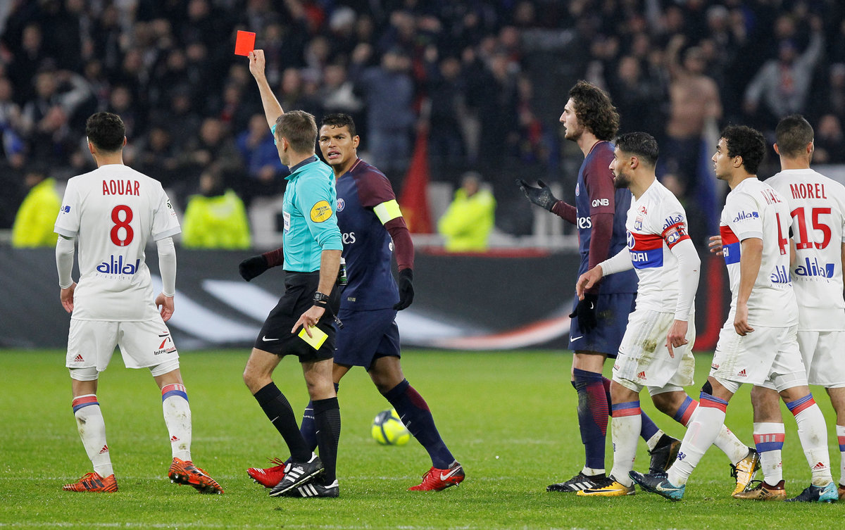 Dani Alves was shown a straight red card in the 57th minute after a rough tackle on Tanguy Ndombele. Layvin Kurzawa had cancelled out Nabil Fekir's early opener.