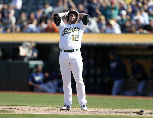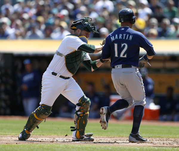The Mariners scored six runs in the seventh inning off the A's bullpen. Kyle Seager started off the inning by blasting a solo homer to right field to make it 9-0. It was Seager's 28th homer of the season.