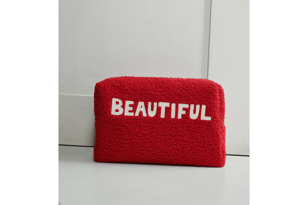 One of the most affordable pieces in the M&S x Bella Freud collection, this playful toiletries bag features the slogan ‘beautiful’ against a textured red finish. Crafted from a plush fabric with a secure chunky zip, the generous size is perfect for storing make-up and skincare while on the move. It would make a lovely gift come Christmas, too.
