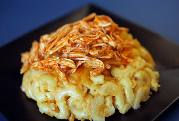The combination of chicken, sauce and macaroni and cheese was bliss on a plate. And only later did I think of a way to make it even more blissful _ by replacing some of the fontina cheese in the macaroni and cheese with blue cheese.