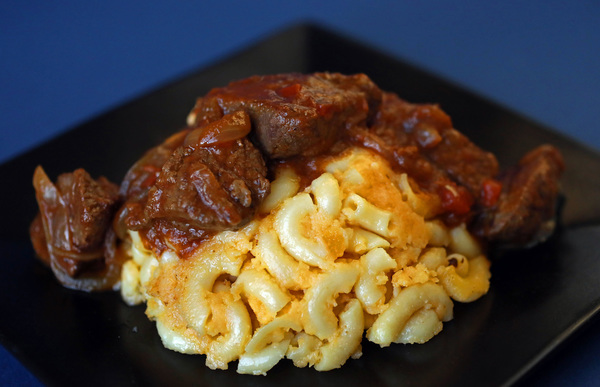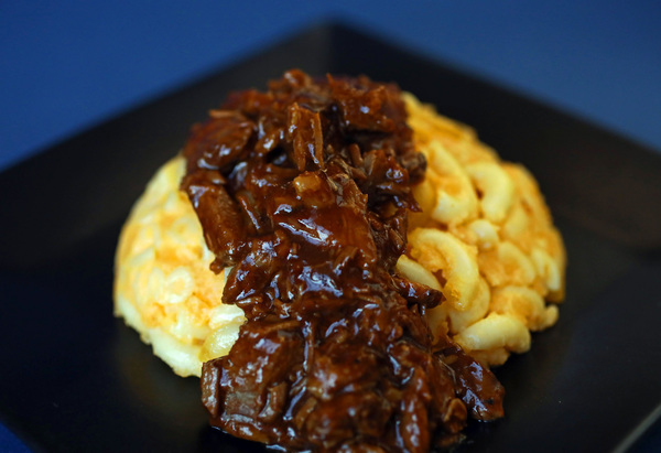 The beef had just a hint of a kick to it, because of the barbecue sauce, which makes it the perfect foil for a smooth and creamy macaroni and cheese.