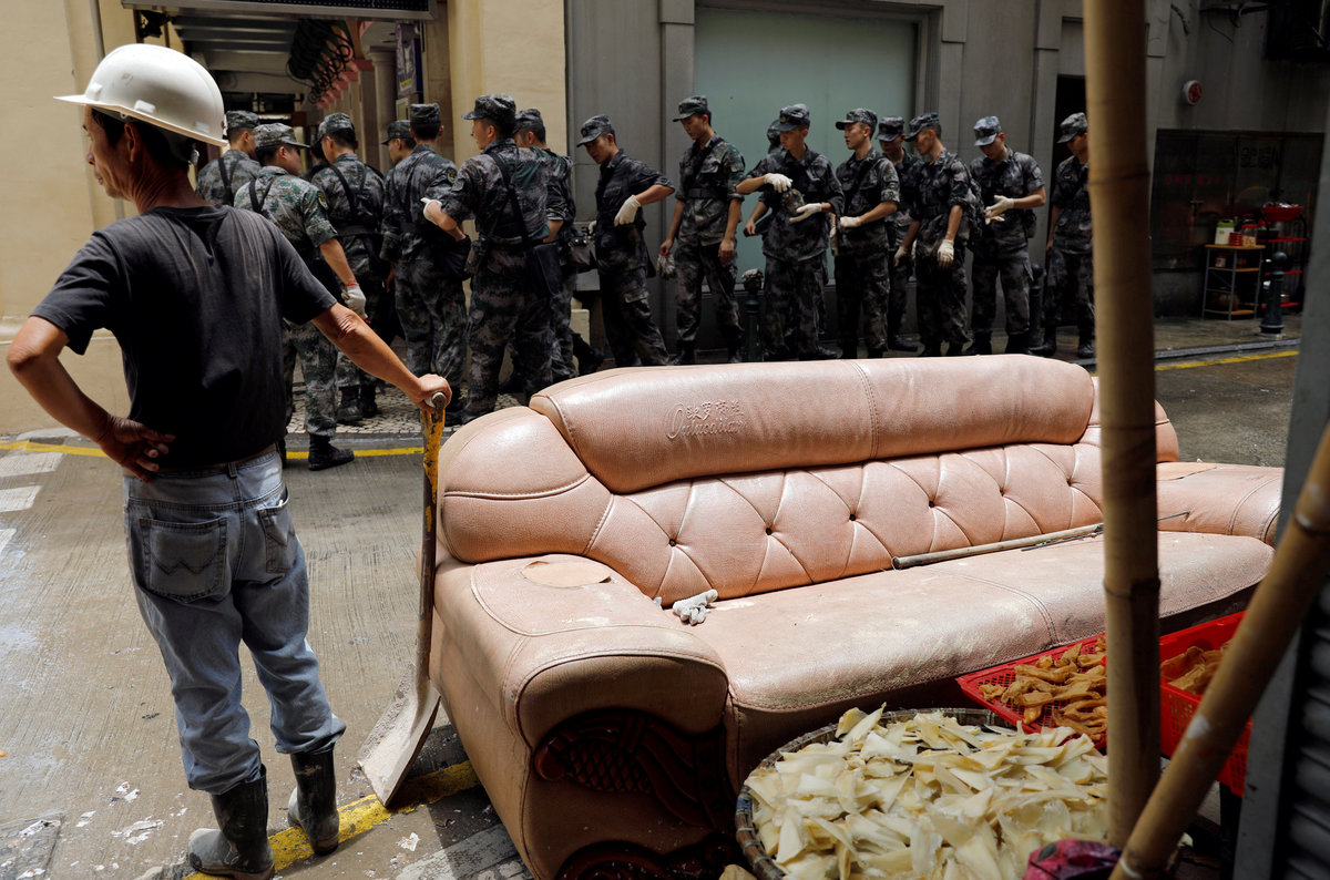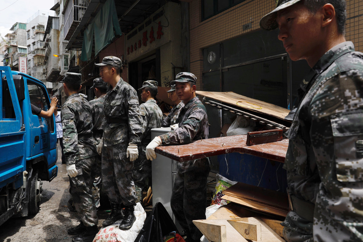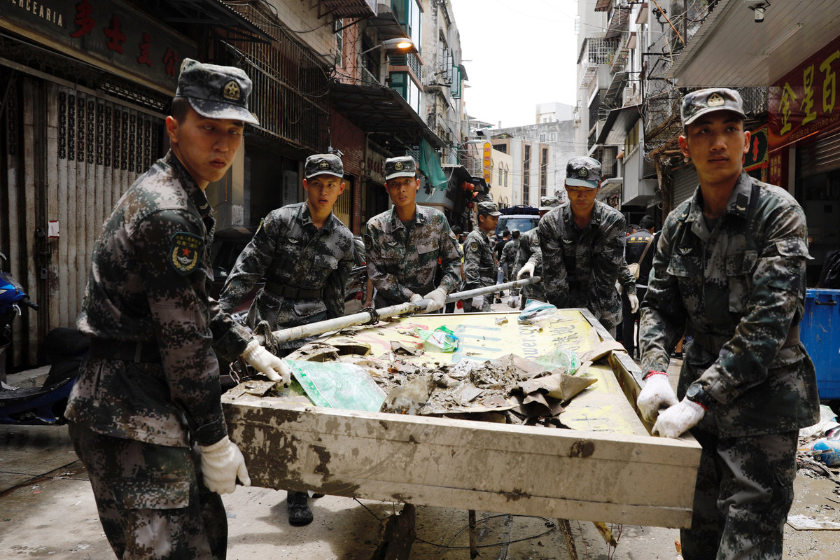 Macau public broadcaster, TDM, reported some 1,000 Chinese PLA troops left their Macau barracks to assist in the recovery. Chinese troops are rarely seen on Macau streets.