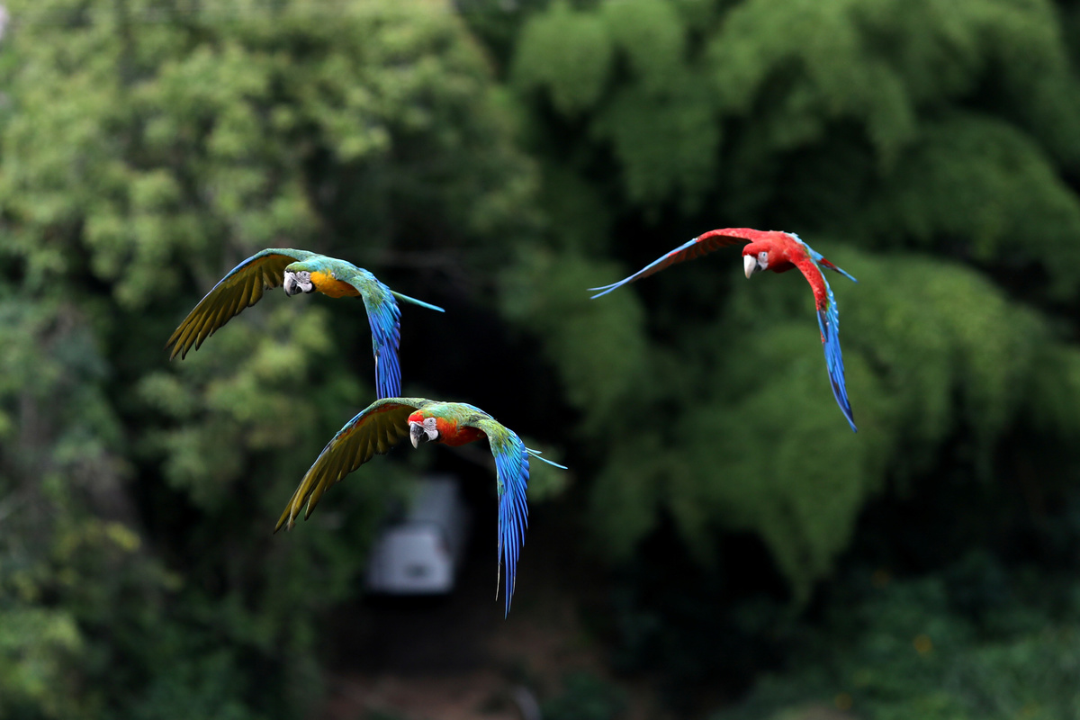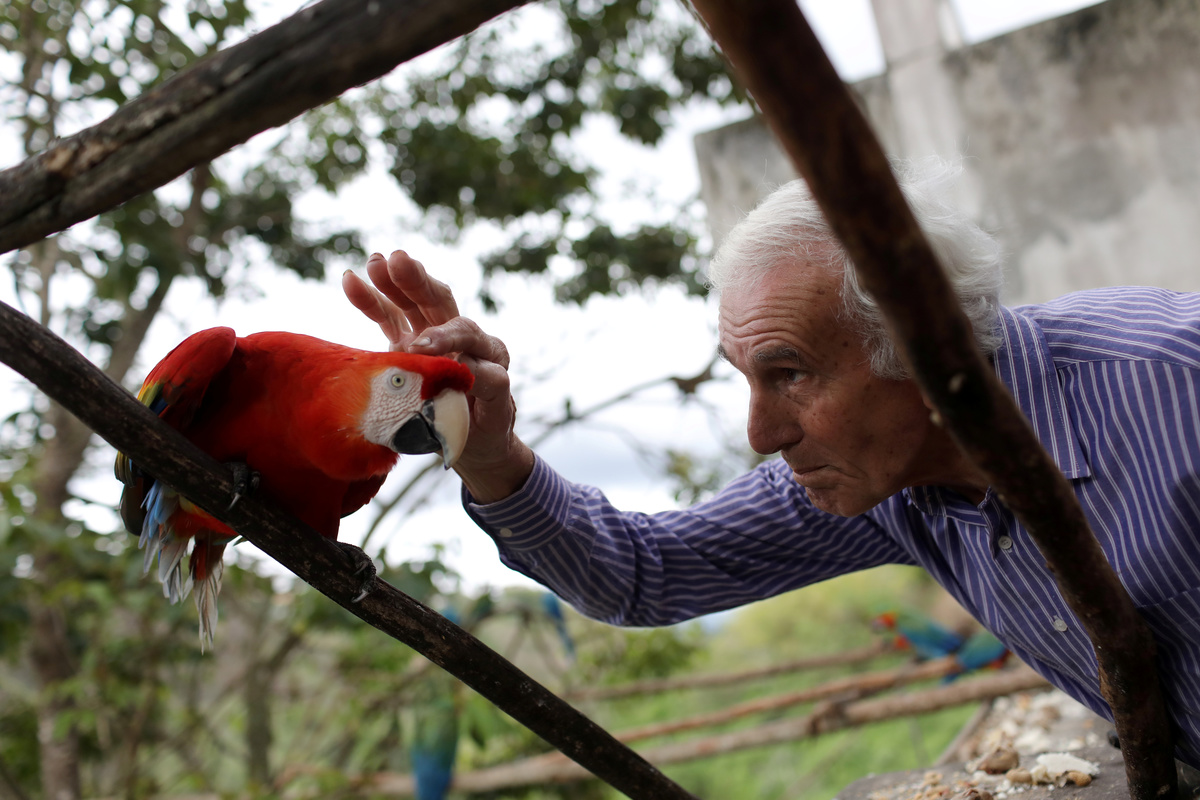 Vitorio Poggi, 75, has fed macaws for decades after becoming fascinated by one that followed him while he was riding his motorcycle in the 1970s.
