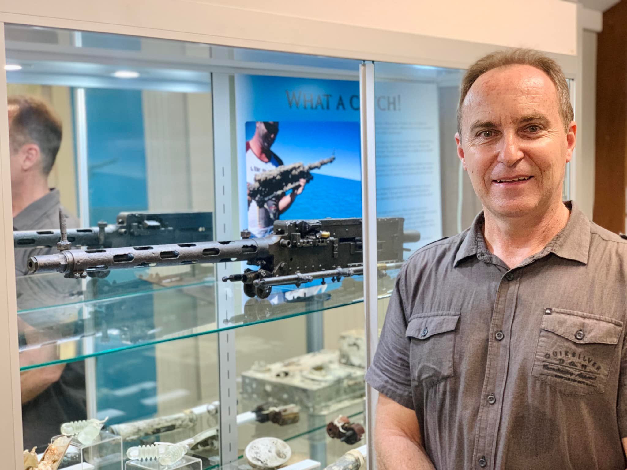 Dion Marinis has carefully restored the Colt MG40, which he believed had been submerged in the ocean for 80 years, and returned it to the Broome Historical Museum this week.
