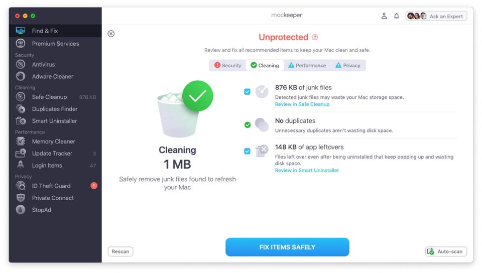 One standout feature of MacKeeper is its unique chat window that gives the user 24/7 access to MacKeeper’s team of privacy and security experts. These are Mac experts at the user’s beck and call, whatever the time of day. The experts’ job is to help registered MacKeeper users with any technical questions.