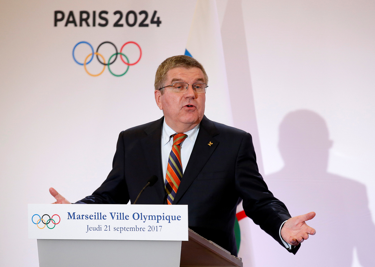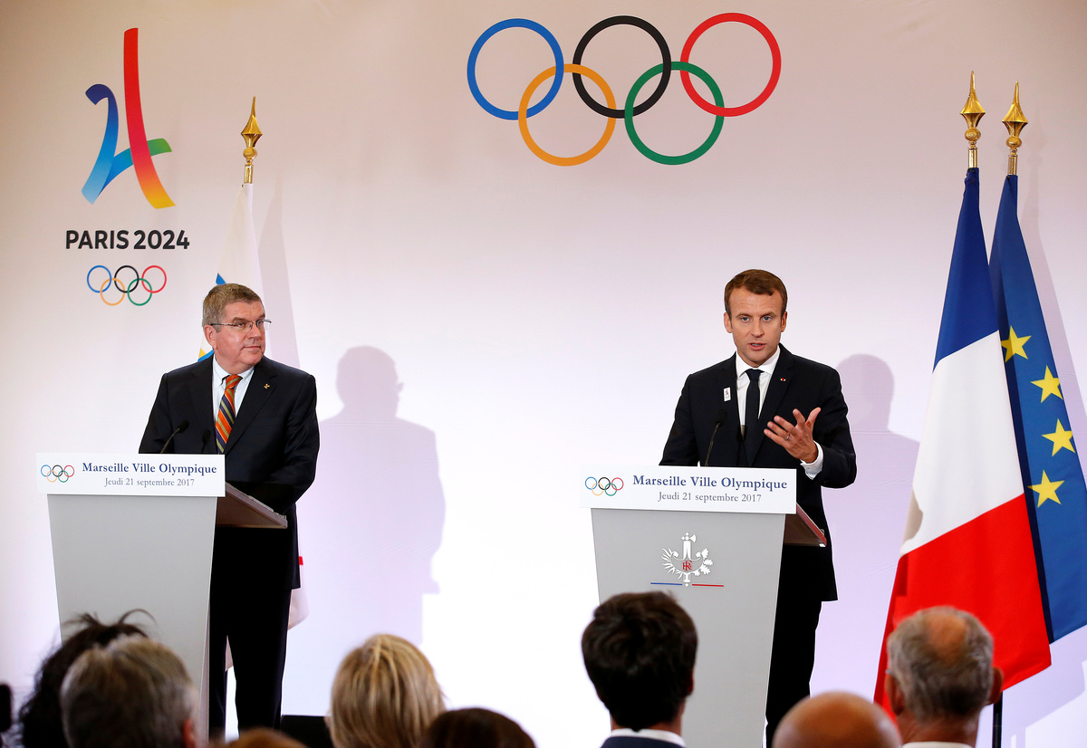"Thank you first for your expertise in translating the Olympic spirit into action by combining the two ambitions of the Paris 2024 candidacy and the Los Angeles 2028 candidacy," Macron said on a visit to the French Mediterranean port city of Marseille with IOC President Thomas Bach.