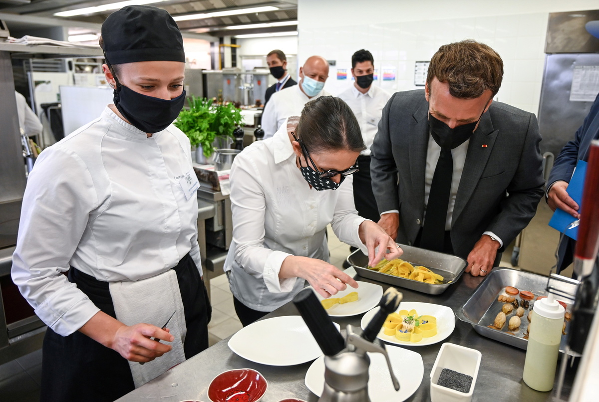 President Emmanuel Macron said on Tuesday his government would help restaurants and bars find staff as the hospitality industry gradually resumes normal operations following months of closures during the coronavirus epidemic.