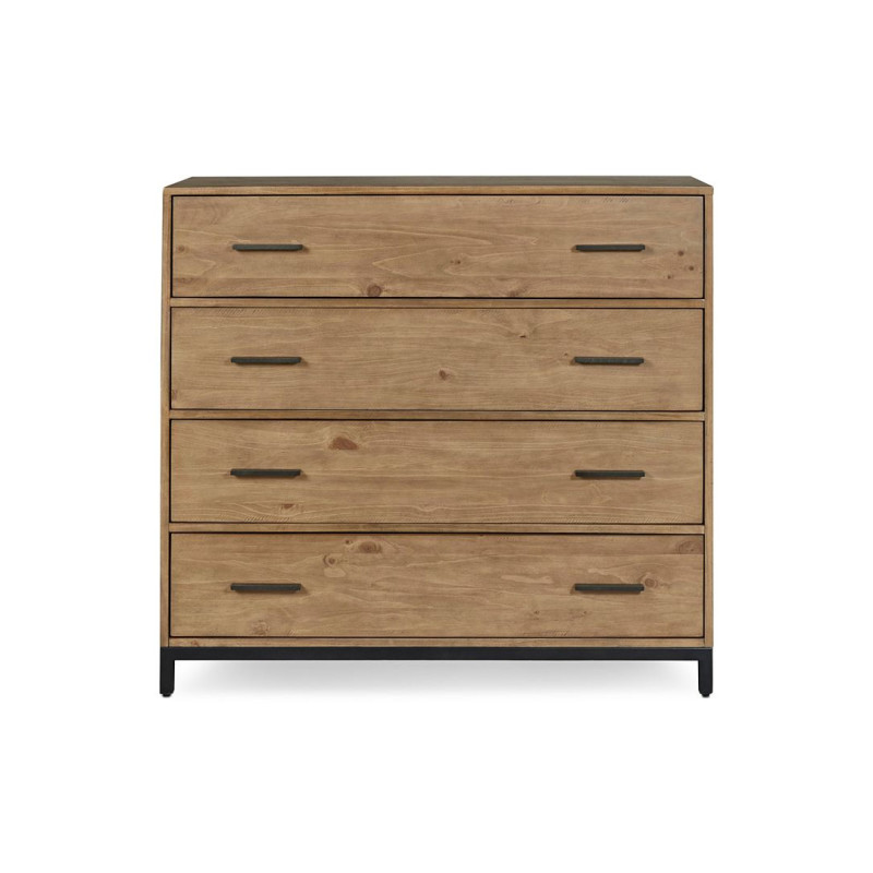 Some furniture is valuable for its functionality, while others focus on aesthetic value. This dresser brings plenty of both. The solid pine wood construction is rustic and sturdy while the silhouette of the piece is modern and sophisticated. The four drawers are both wide and deep, making them large enough for nearly a full wardrobe. A heavily glazed matte lacquer finish protects the beautiful wood surface from moisture and other contaminants. Each drawer has pewter bar pulls and ball-bearing metal guides, which offer smooth opening and closing.