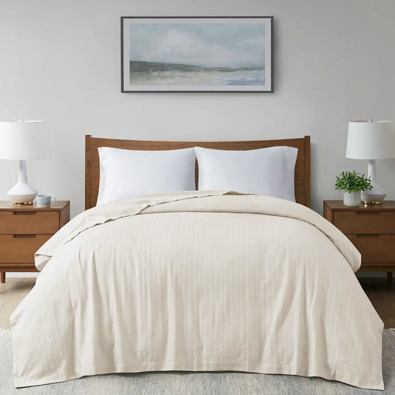 Egyptian cotton is known all over the world for its softness and breathability. The luxurious textile is also renowned for its durability, which makes it machine-washable. This blanket has an attractive chevron pattern woven into it and it was designed exclusively for the Macy's home collection. The bedspread is available in three sizes and four neutral (yet beautiful) colorways. No matter which you choose, they're all on sale at the same low price, so you might as well add the biggest option to your cart to get the most bang for your buck.