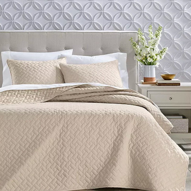 This is a bedcover that won't disappoint. The 100% cotton construction is cozy and warm, yet highly breathable. It's machine-washable and won't fade easily. This collection was created exclusively for Macy's so you won't find it available anywhere else. You can choose from three different sizes as well as three different color options. Matching pillow shams are also available for purchase form Macy's. No matter what your individual design aesthetic may be, this quilt will look great with it. The attractive weave pattern is subtle enough to be unobtrusive, but interesting enough to add some dynamism to your decor.