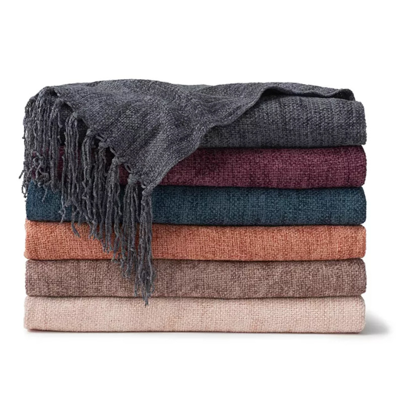 Made from a cotton and viscose material, this throw blanket also includes chenille yarns that are soft to the touch. It measures 50 inches long and 60 inches wide, and is available in colors such as taupe, blush, cabernet, midnight blue, clay, and charcoal. The best part? You can use this throw as an additional layer of warmth or as a piece of home decor thrown over your couch.