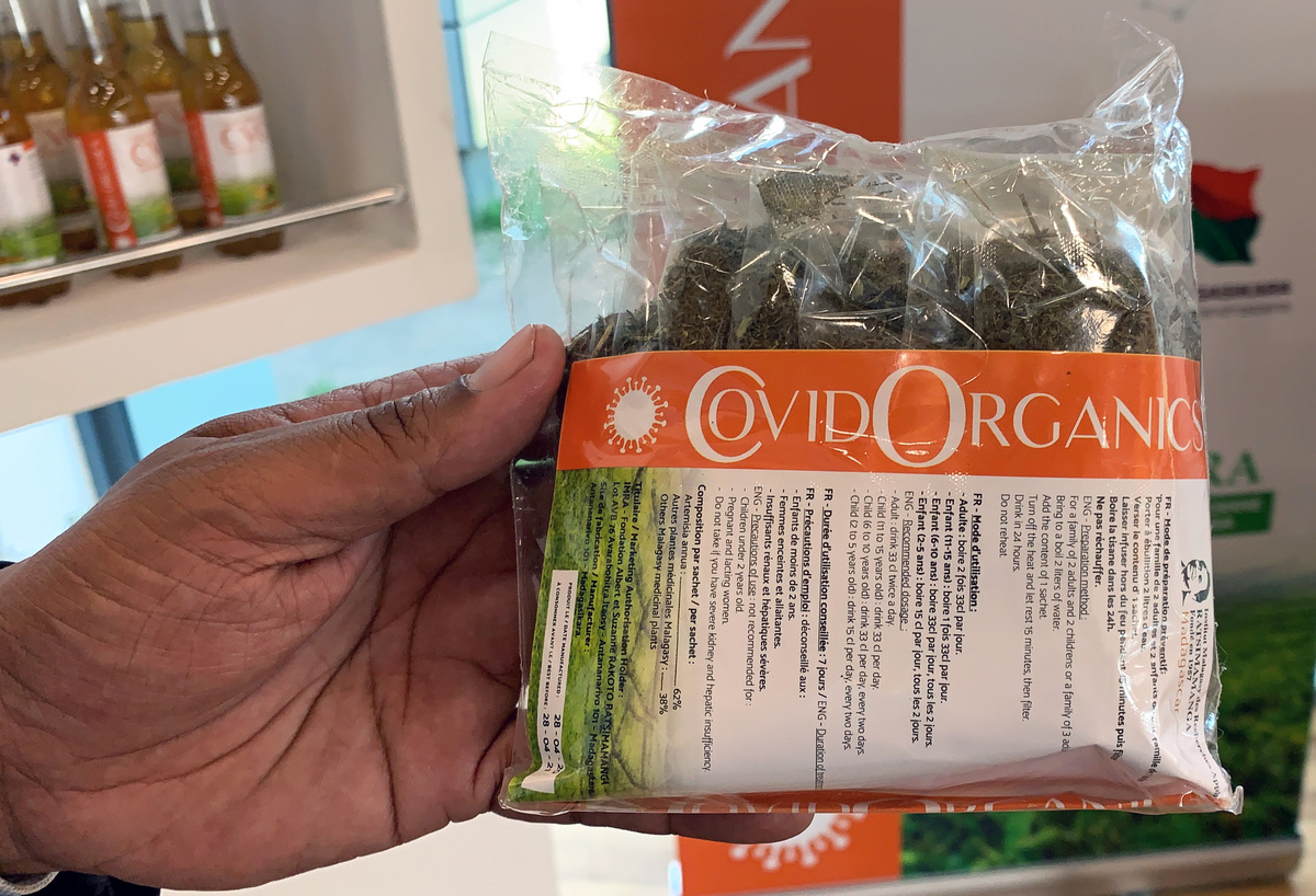 Last month President Andry Rajoelina launched the remedy at a news conference, drinking from a sleekly-branded bottle filled with an amber liquid which he said had already cured two people.