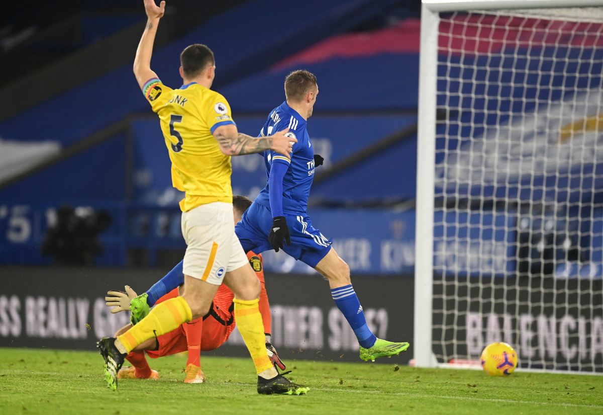 Striker Jamie Vardy added another as Leicester moved up to third on 24 points from 12 matches, one behind leaders Tottenham Hotspur and second-placed champions Liverpool, while Brighton stayed 16th on 10 points from 12 games.