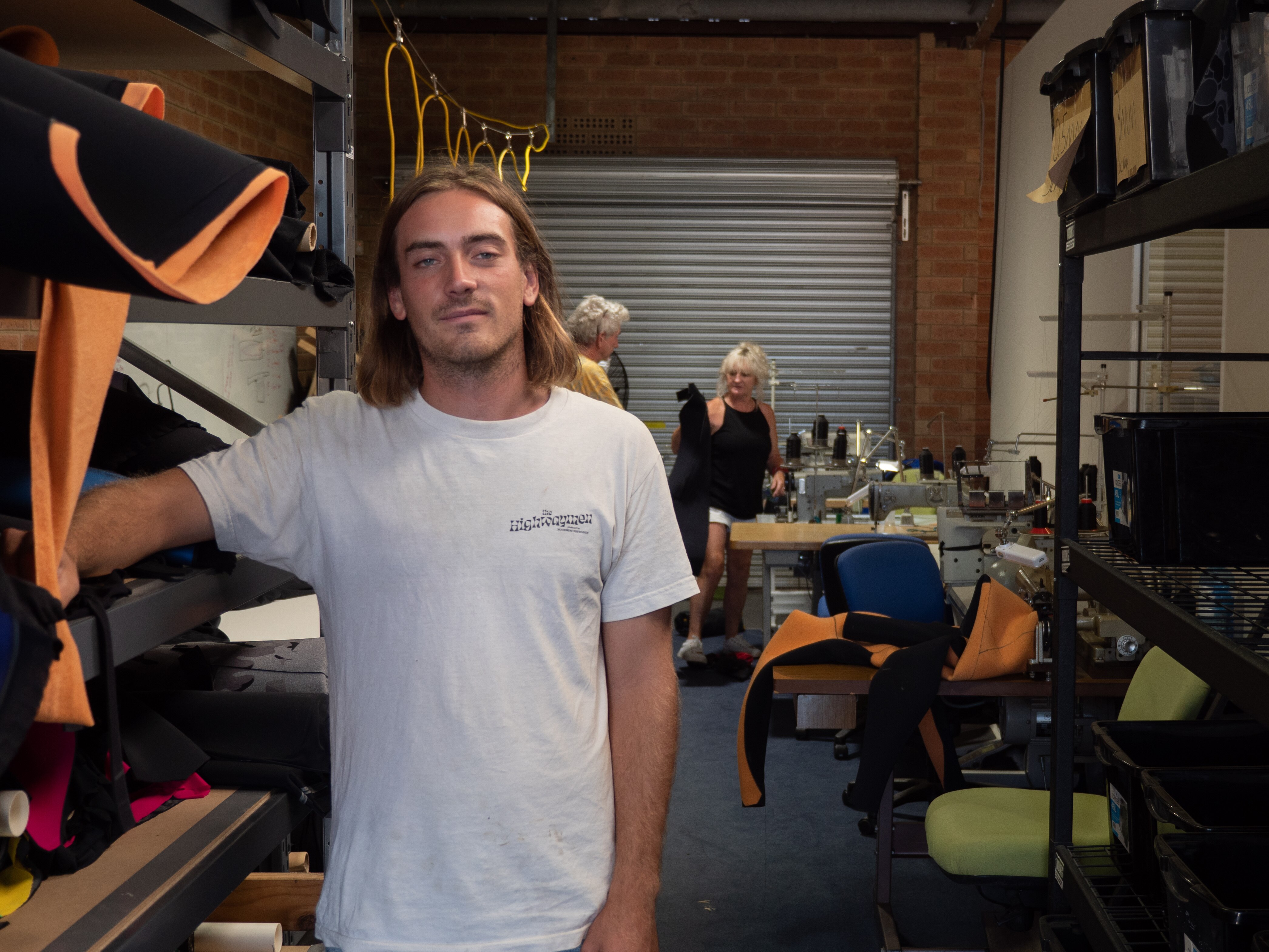 "[Manufacturing overseas] you can pay people a lot less, something like $1 or $2 a day, to stitch a whole heap of wetsuits, and you can use terrible material that's petroleum-based," he said.