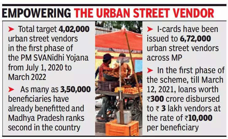 Bhupendra Singh informed that against the set target of distributing loans to a total of 4,02,000 urban street vendors in the first phase of the PM SVANidhi Yojana from July 1, 2020 to March 2022, as many as 3,50,000 vendors have already benefitted and MP ranks second in the country.