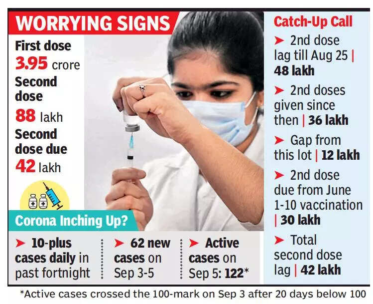 BHOPAL: There is a slow but alarming rise in Covid cases in Madhya Pradesh after a two-month lull when daily counts had dropped to single digits. Active cases have again crossed the 100 mark, and the big concern is that the state is way behind its second-dose vaccine targets.