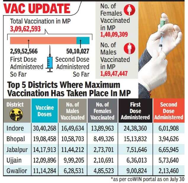 BHOPAL: So far 3.09 crore vaccine doses have been administered in the state, of these 45% are females and 55% are males.