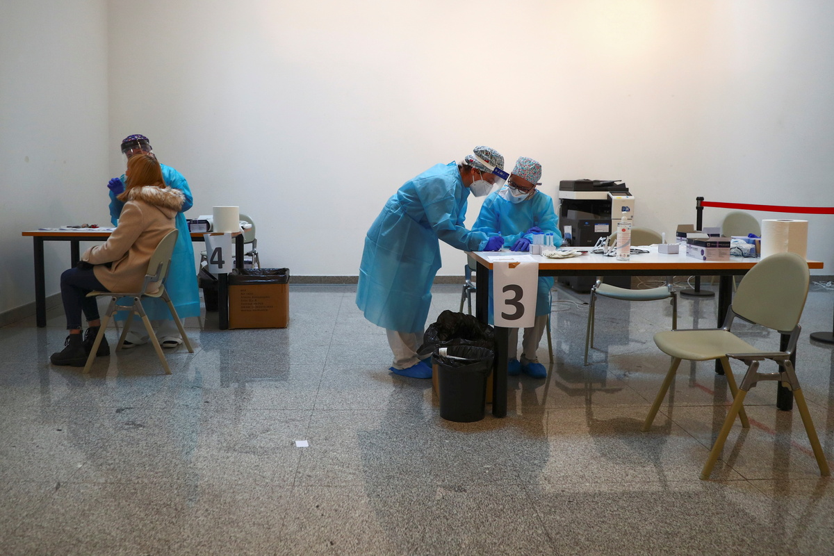 Jesus Jimenez, 21, whose grandmother died of coronavirus in a nursing home, took a test at the Rey Juan Carlos University in Mostoles, a satellite town southwest of Madrid. "Everything is looking dark. I'm afraid I'll find myself in the same situation as I was in the first and second waves," he said, after receiving a negative result.