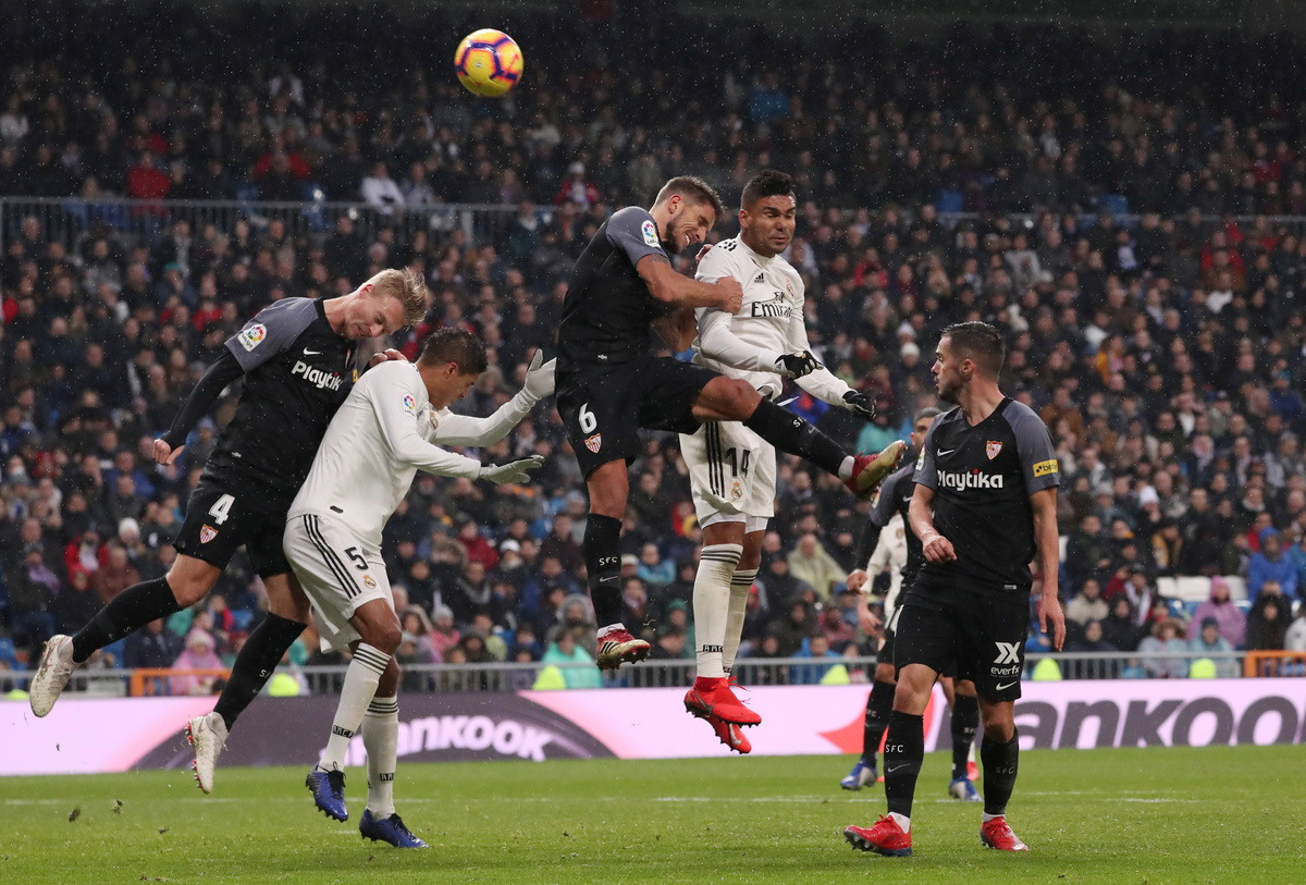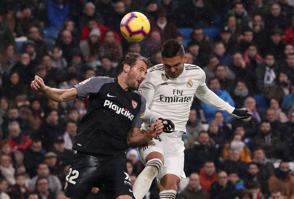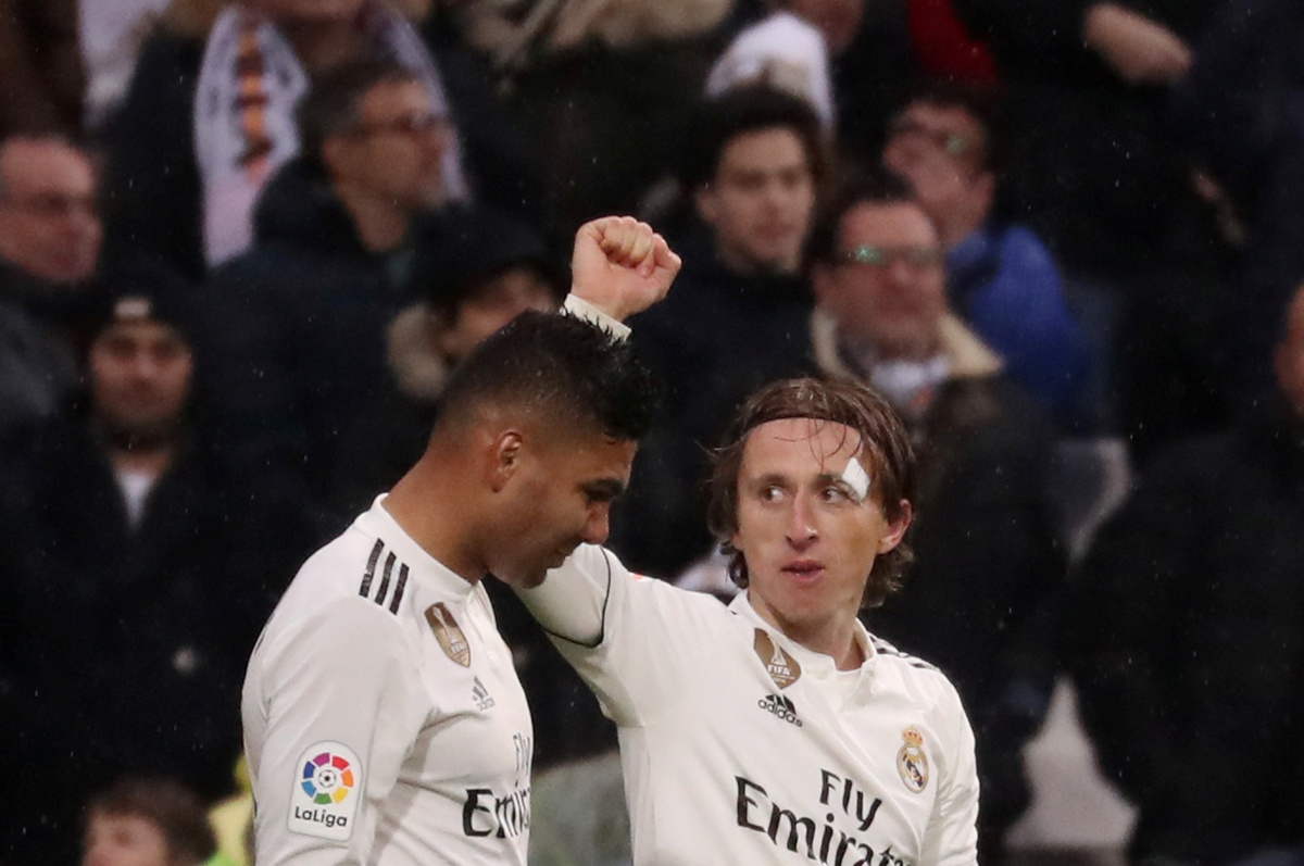 MADRID (Reuters) - Real Madrid earned a therapeutic 2-0 victory at home to Sevilla with late strikes from Casemiro and Luka Modric as Santiago Solari's stuttering side leapfrogged the Andalusians into third spot in La Liga on Saturday.