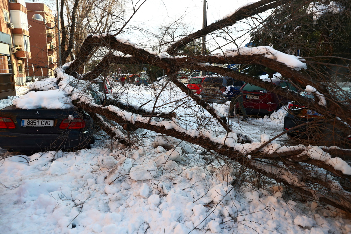 Fallen trees still blocked some roads on Thursday and heaps of rubbish built up alongside snowdrifts, as the Spanish capital tried to get waste-collection services back up and running.