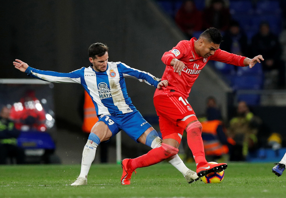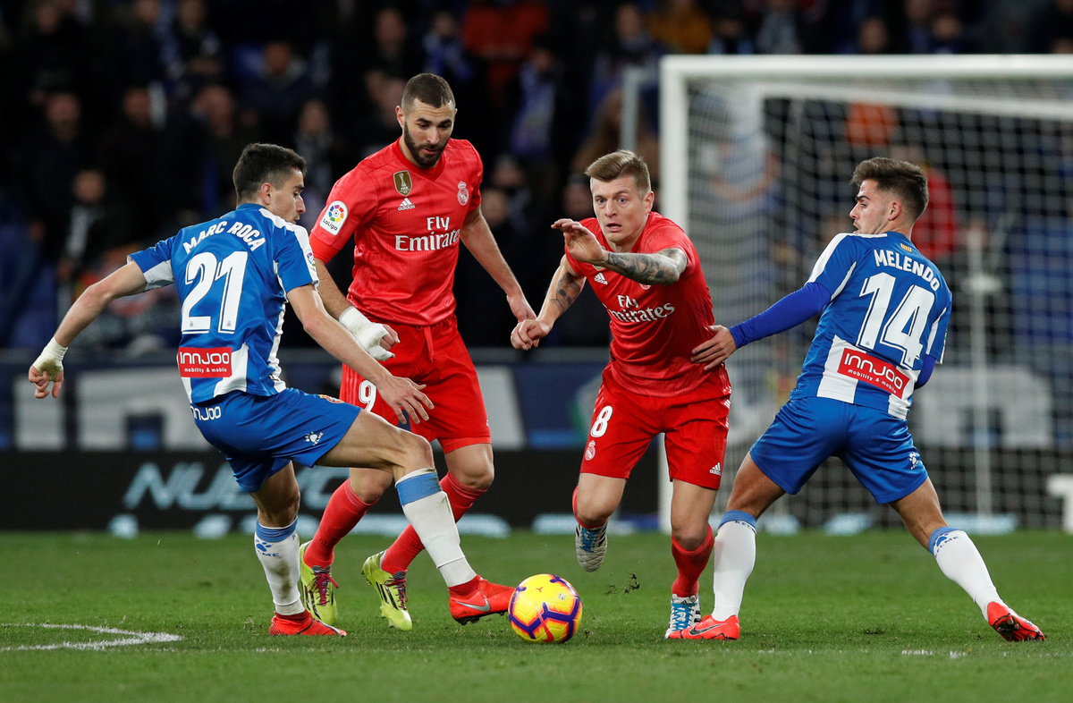 Third-placed Real usually fare well on trips to Espanyol and they got off to a flying start on this visit when Karim Benzema scored in the fourth minute on the rebound, beating former Real goalkeeper Diego Lopez who had parried a shot from Luka Modric.