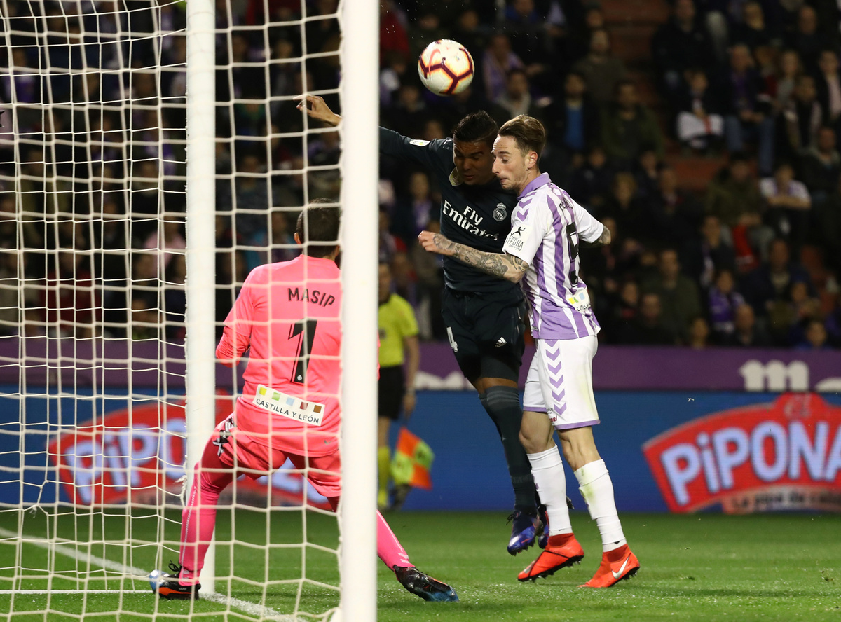 Madrid levelled thanks to some sloppy goalkeeping from Valladolid's former Barcelona goalkeeper Jordi Masip, who lost an aerial contest with Nacho, and Varane calmly knocked the loose ball over the line into the net with his studs.