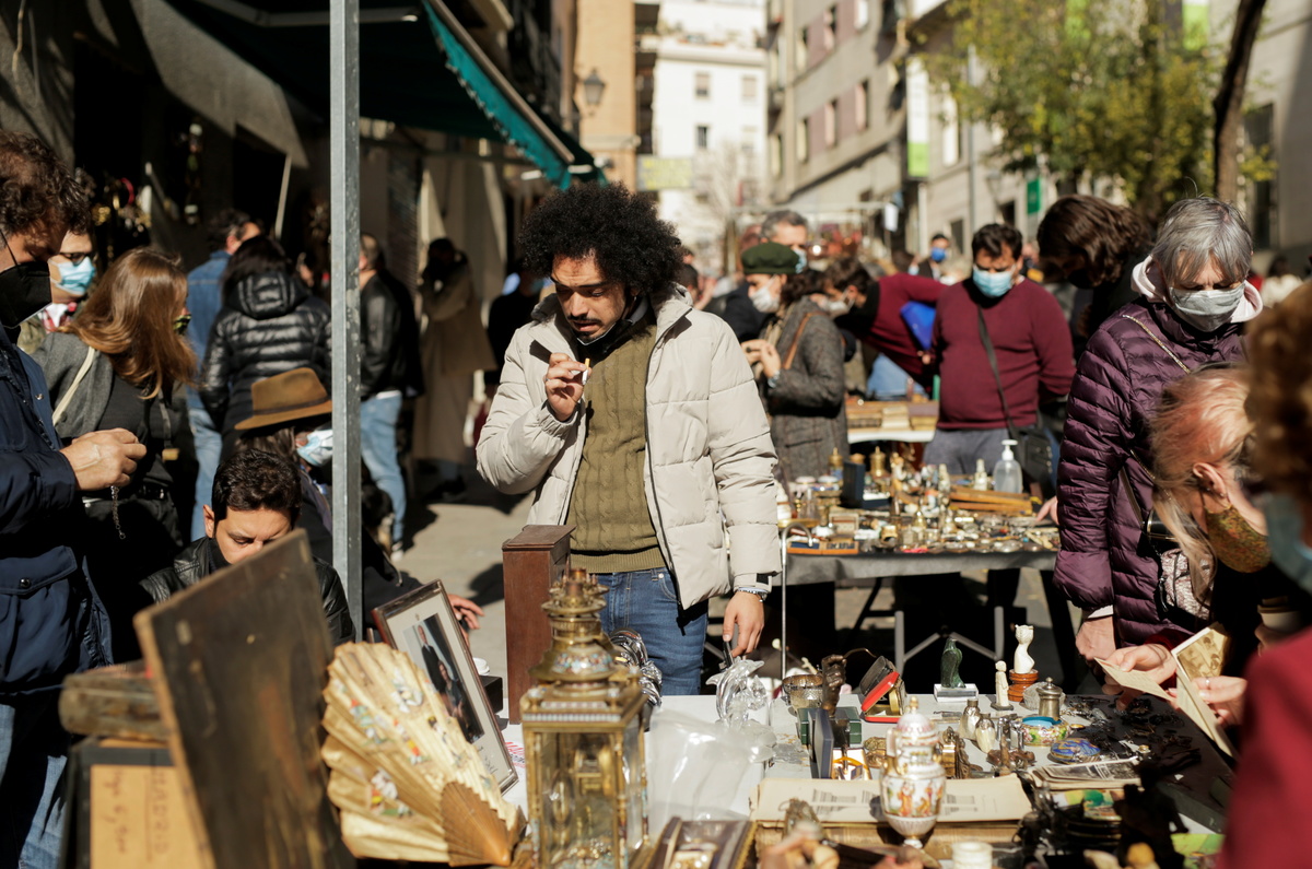 The market, which brings the streets to life every Sunday and national holiday, has been shut since Spain's first national lockdown, in March. On Sunday, stallholders and locals wearing masks welcomed even a partial return to normality.