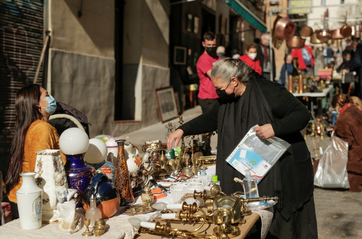 Visitor numbers, which can top 100,000 on a normal Sunday, were limited to 2,000 at a time, while stalls were spaced further apart and police stood at the entrances and exits to ensure people stuck to a one-way route around the market, held in the neighbourhoods of La Latina and Lavapies.
