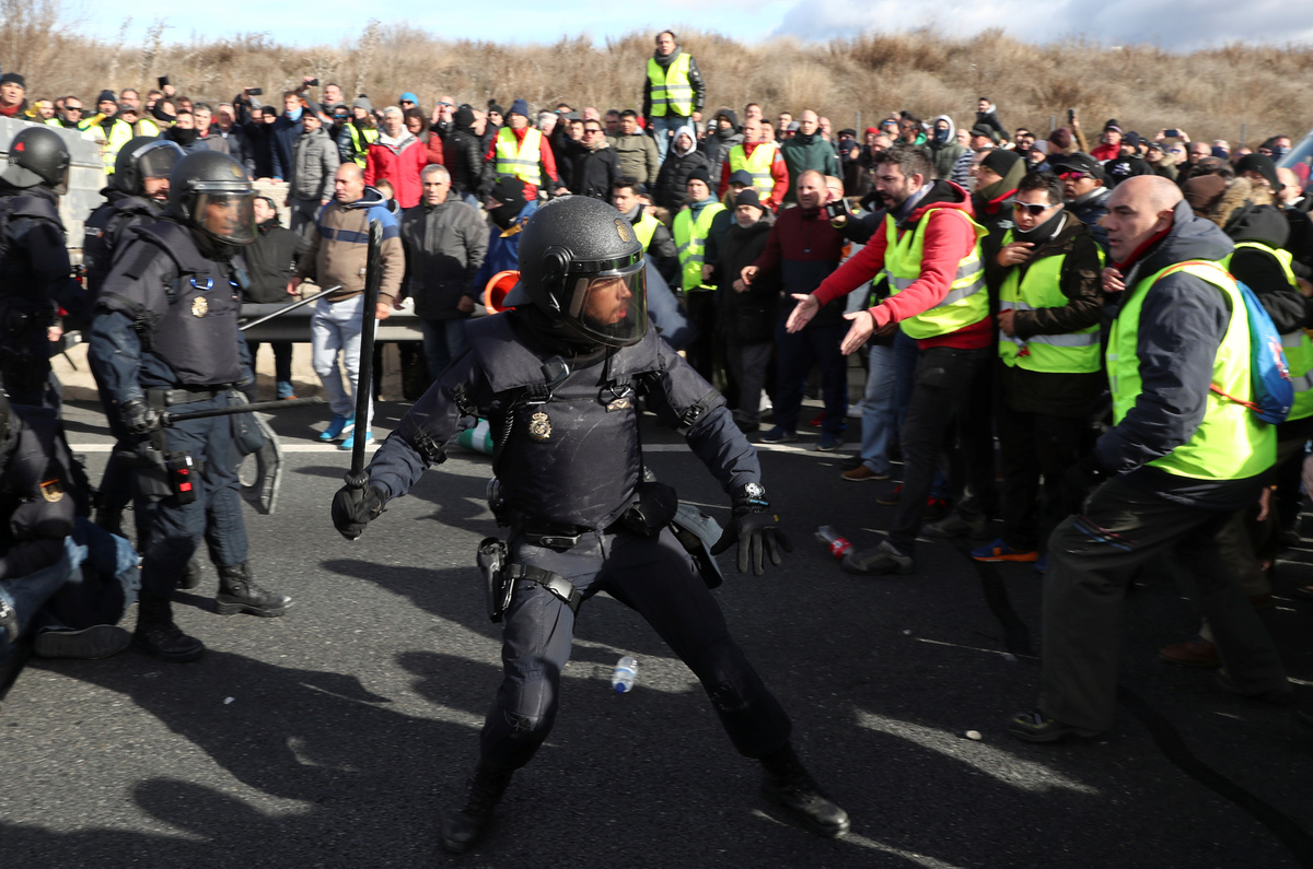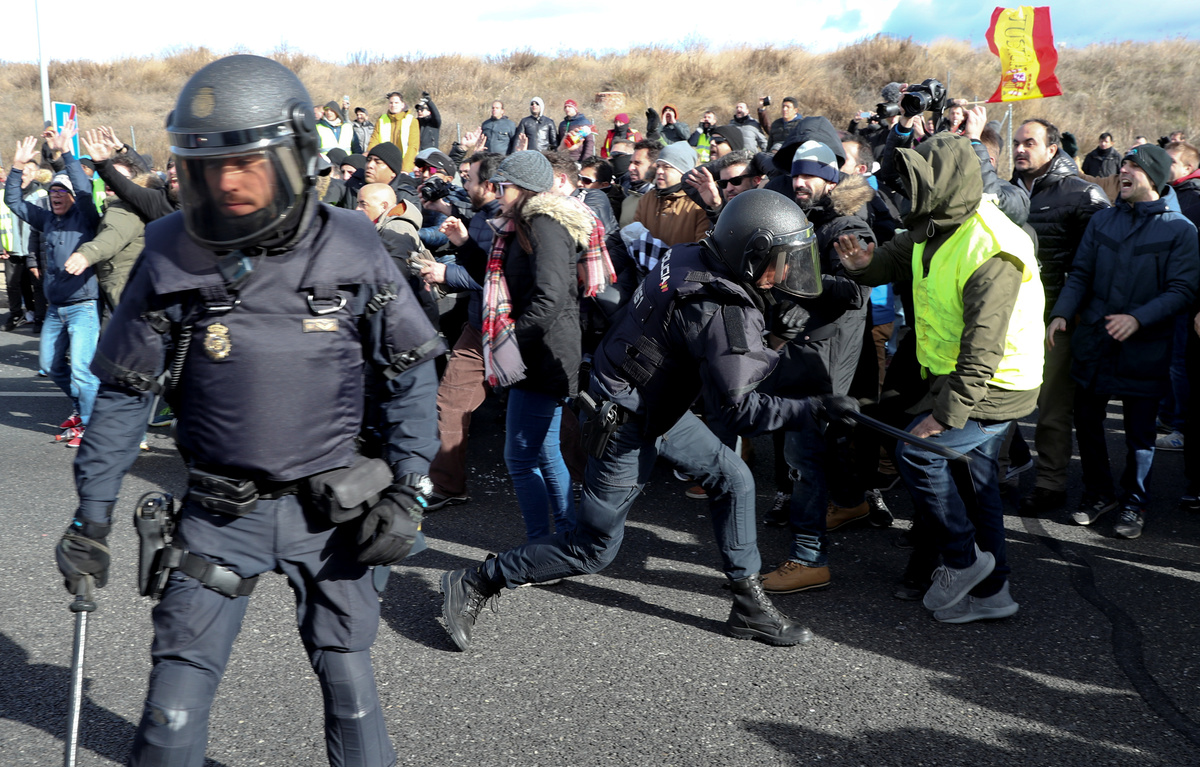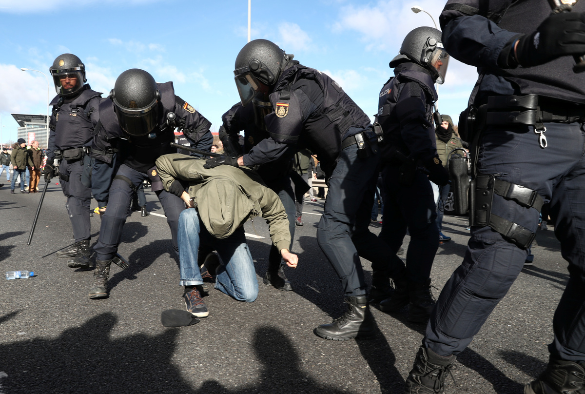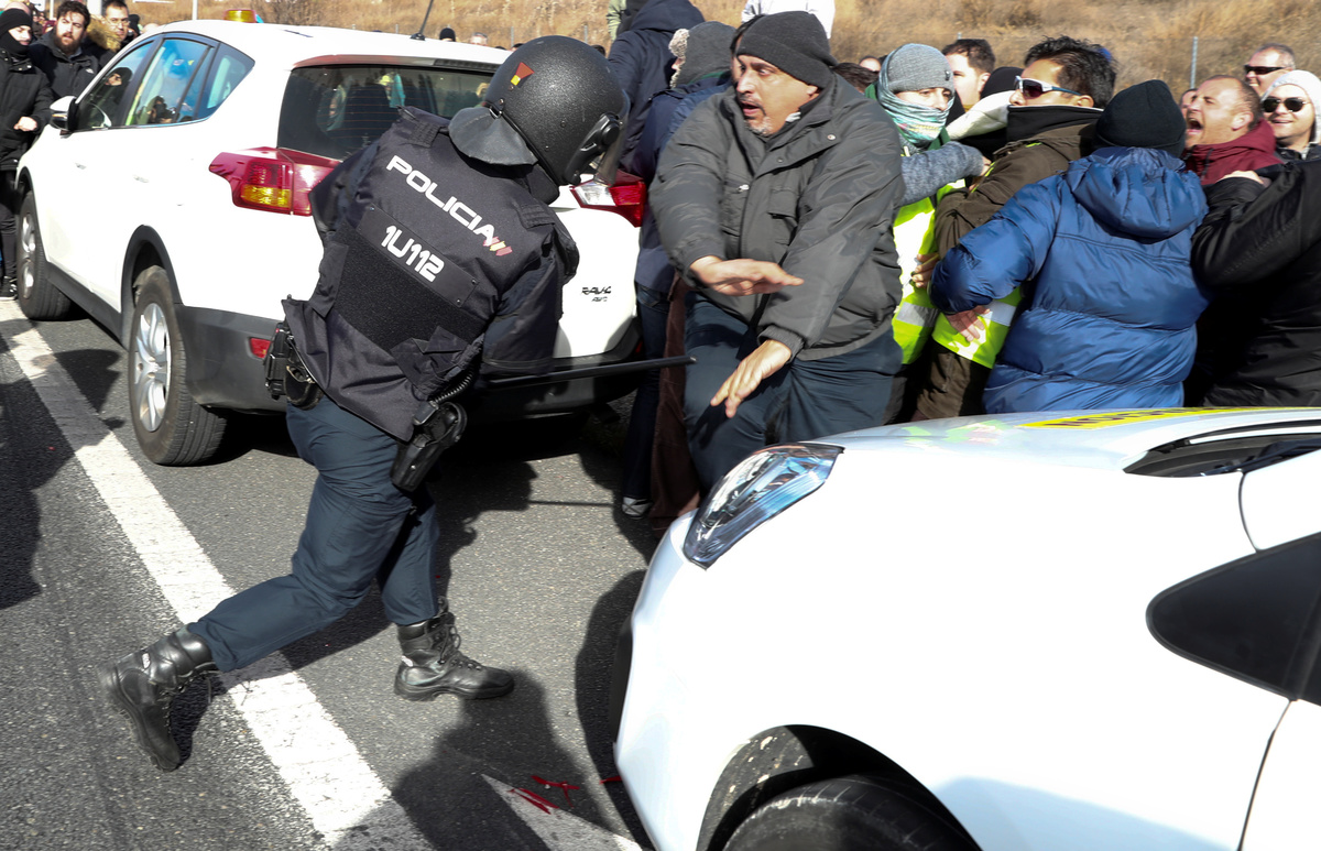 MADRID (Reuters) - Hundreds of taxi drivers protested outside one of Madrid's largest tourist fairs on Wednesday, using their cabs to block access roads and burning rubbish as part of an open-ended strike against Uber and other ride-hailing services.