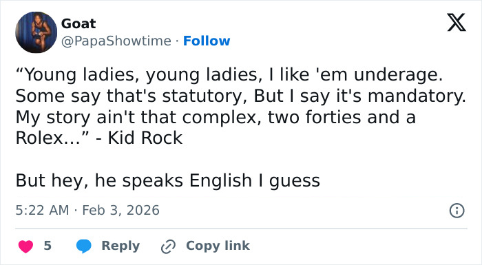 Another asked, “MAGA’s obsession with Kid Rock? Like? I don’t get it????”