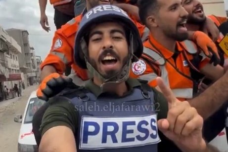 Responding to news of his killing, Duwaji, 27, posted four broken heart emojis on Instagram above a picture of him waving a Palestinian flag and wearing a protective “press” flak jacket.