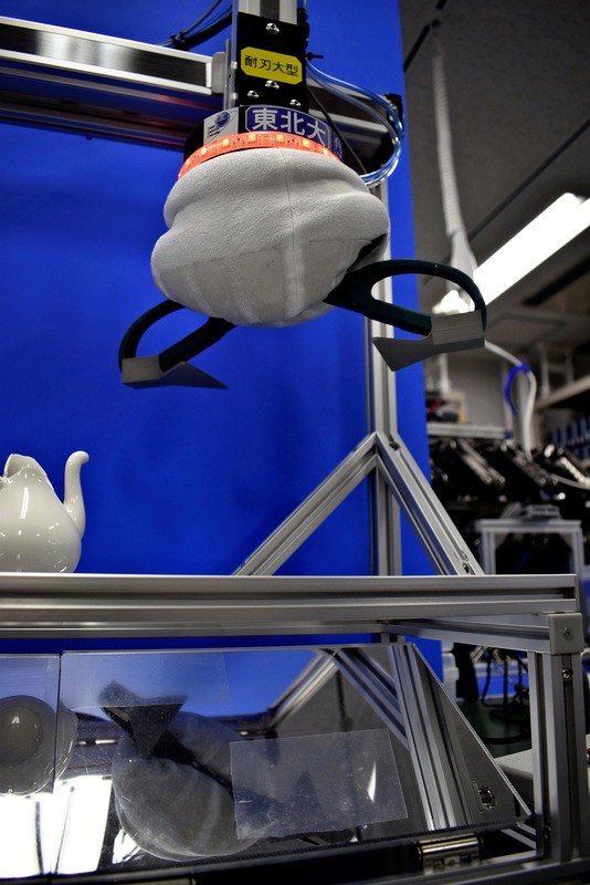 SENDAI -- A fingerless inflatable robot "hand" has been developed that can grab knives, broken metal pieces and other objects of various shapes and sizes that can be dangerous for humans to handle.