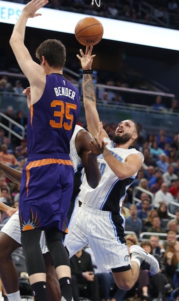The run continued into the third quarter's early stages. Serge Ibaka blocked a dunk attempt by Alex Len. Vucevic hit a jumper over Len. A few sequences later, Vucevic fed Fournier for a wide-open 3-pointer that put the Magic ahead 49-46.