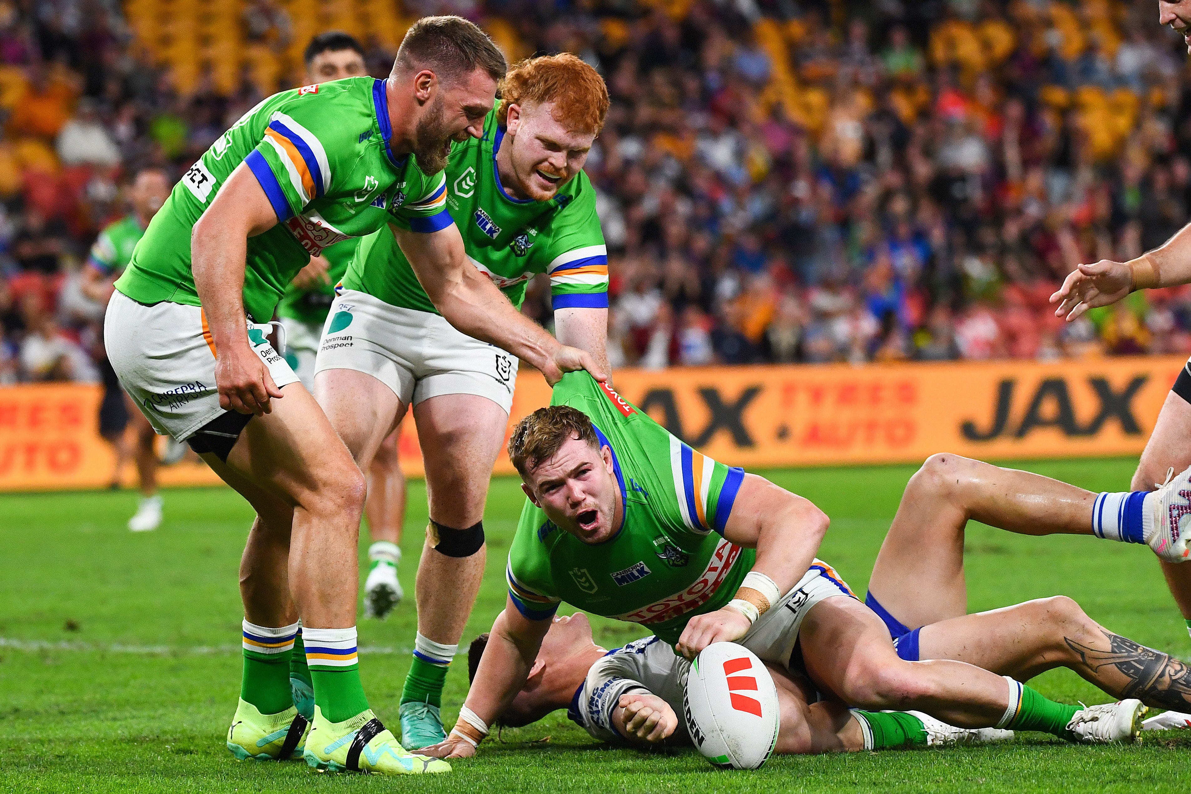 Earlier the Canberra Raiders kicked things off, edging an 11-try thriller against the Bulldogs.