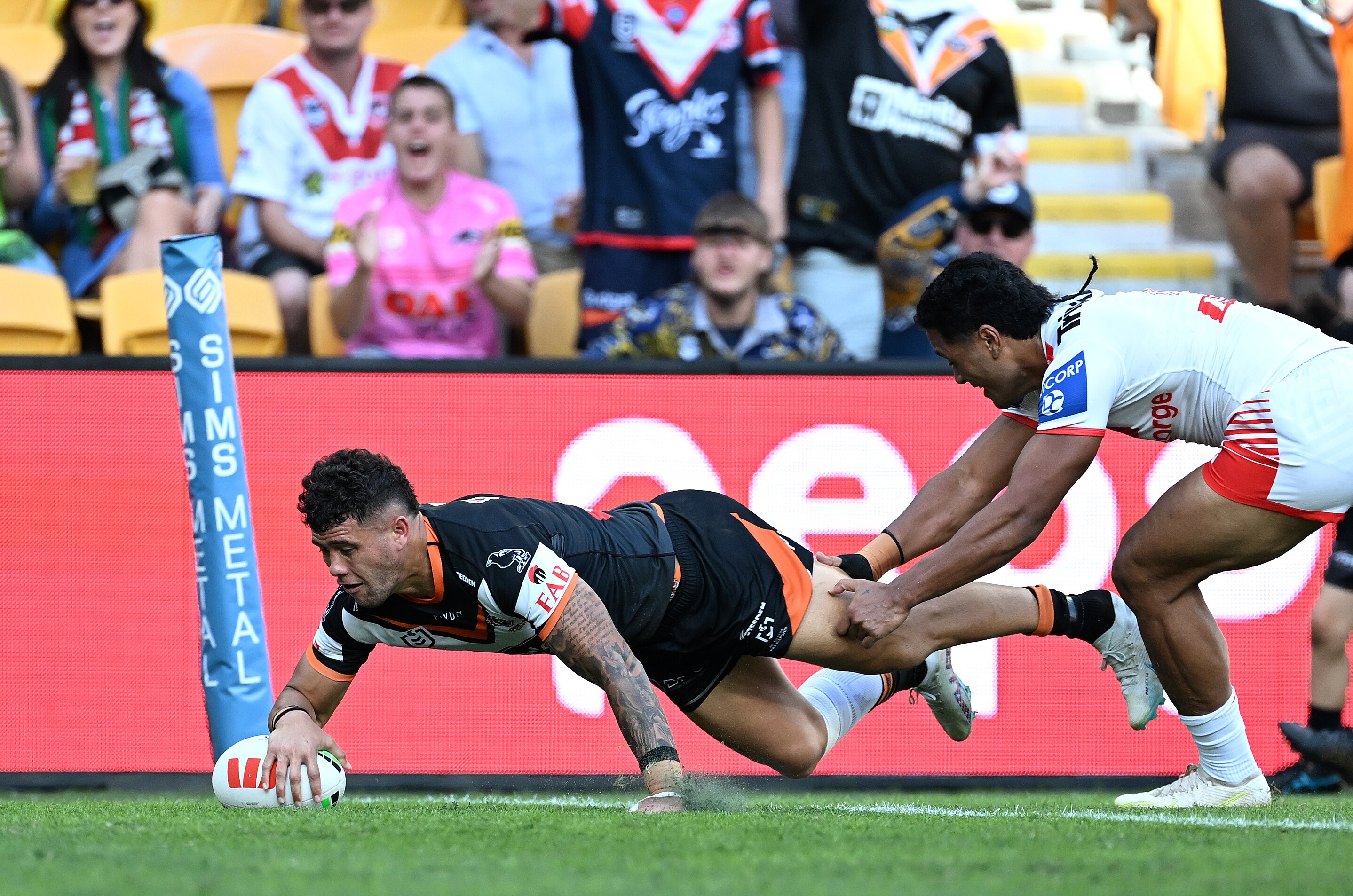 Starford To'a and David Nofoaluma tries gave the Tigers a half-time lead, despite Jayden Sullivan's 32nd-minute try.