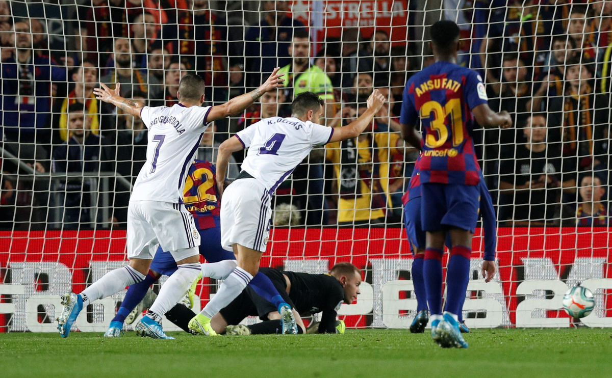 Soccer Football - La Liga Santander - FC Barcelona v Real Valladolid - Camp Nou, Barcelona, Spain - October 29, 2019 Real Valladolid's Kiko celebrates scoring their first goal REUTERS/Albert Gea