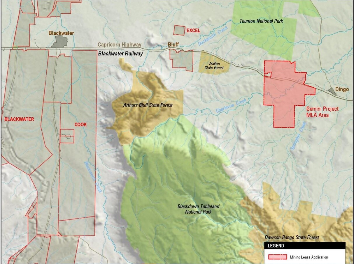 This is the site for Magnetic South's proposed Gemini project, an open-cut coal mine with a rail loop and loading network, near the Dingo township and 120 kilometres west of Rockhampton.