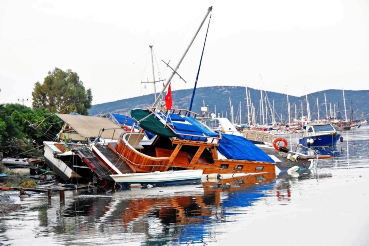 The broadcaster CNN Turk said that, in Bodrum, 60 vehicles had been dragged along by the water. It also showed boats listing in a harbor. Several store owners told the broadcaster NTV they had suffered flood damage.