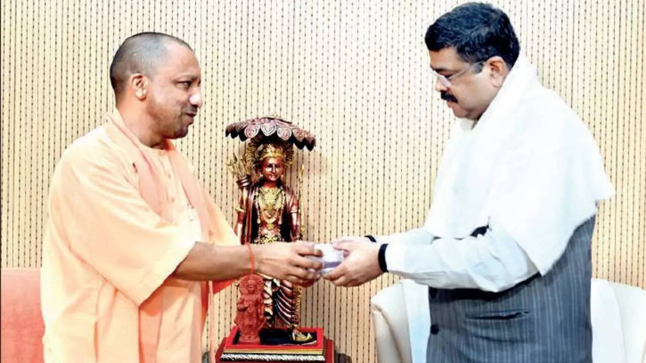 GORAKHPUR: Union education minister Dharmendra Pradhan and chief minister Yogi Adityanath on Thursday unveiled a 12.5-ft-tall statue of Mahant Digvijaynath at a park named after him in Gorakhpur. While speaking on the occasion, the Union minister said a shodh peeth(research centre) will be established under the name of Mahant Gambhirnath at DDU Gorakhpur University.