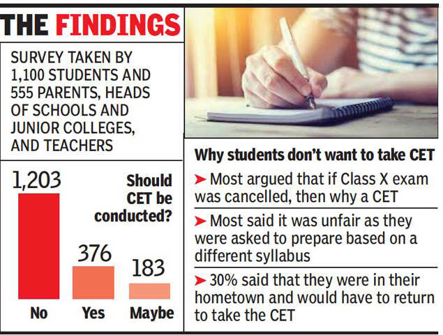 Many students who have migrated to other places, would be forced to return to take the offline CET, a point that the state did not consider in its survey. Close to 30% of the respondents said they would have to return to take the test.