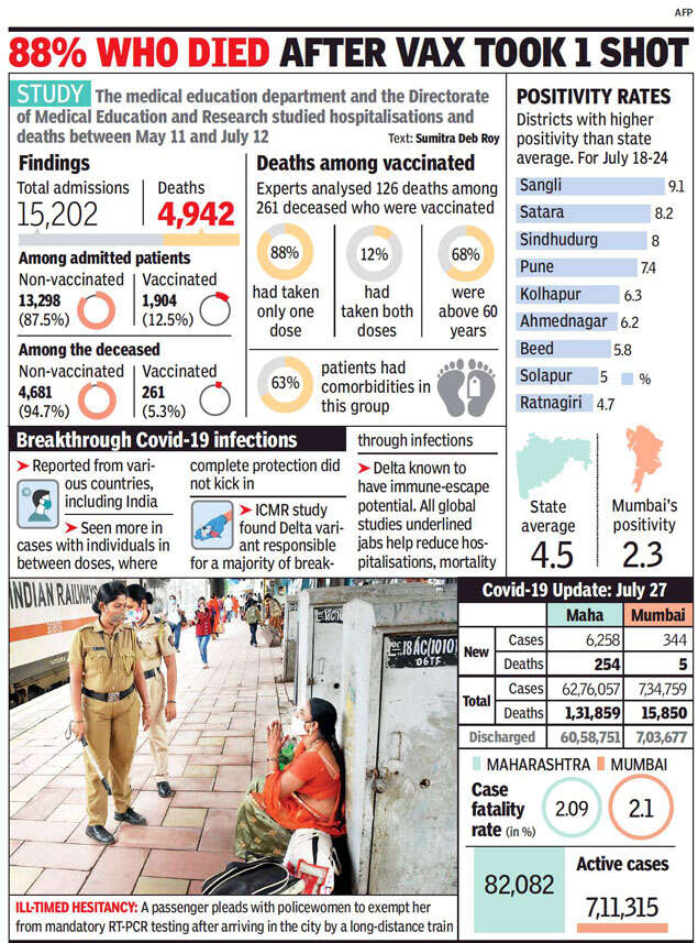 “The trend that emerges from the data echoes what healthcare authorities have been saying about the importance of vaccination,” said Saurabh Vijay, secretary, medical education. Echoing him, Dr Dilip Mhaisekar, director of medical education and research (DMER), said that people should no longer have inhibitions about the role of vaccination in preventing deaths. “It is important to get vaccinated. Ignorance can be the reason why some sections are still hesitating to get the shots,” he said.