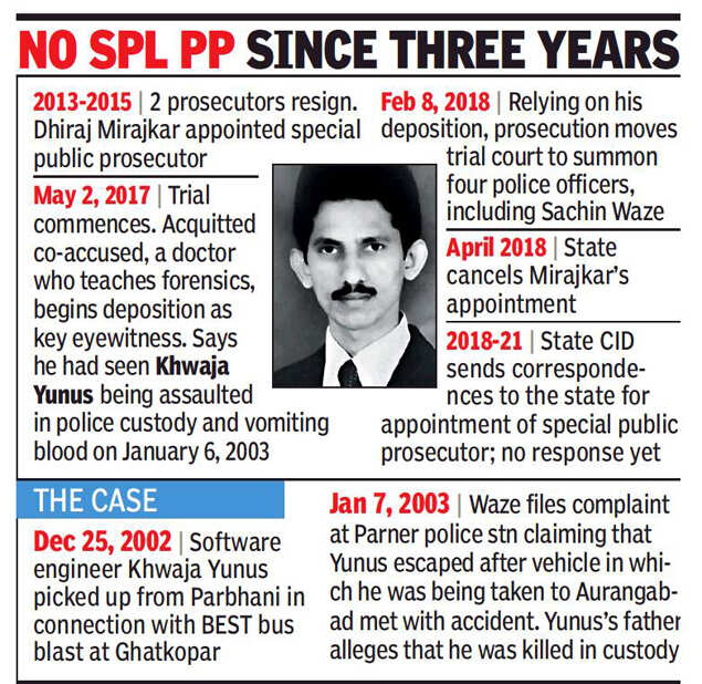 The prosecution and Jagtap assured the court that a senior CID officer will attend court on every date. A month’s time was sought to pursue the matter regarding the SPP appointment. The court said summons should be issued to Yunus’s mother Ashiya Begum to understand the nature of her petition in the SC and HC.